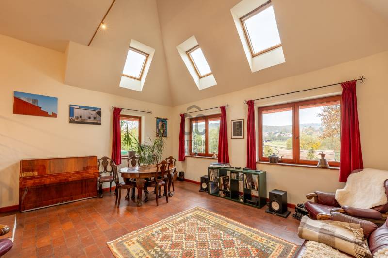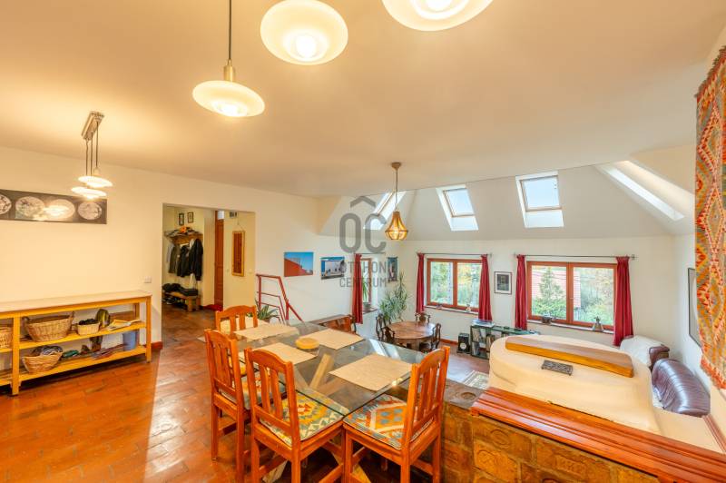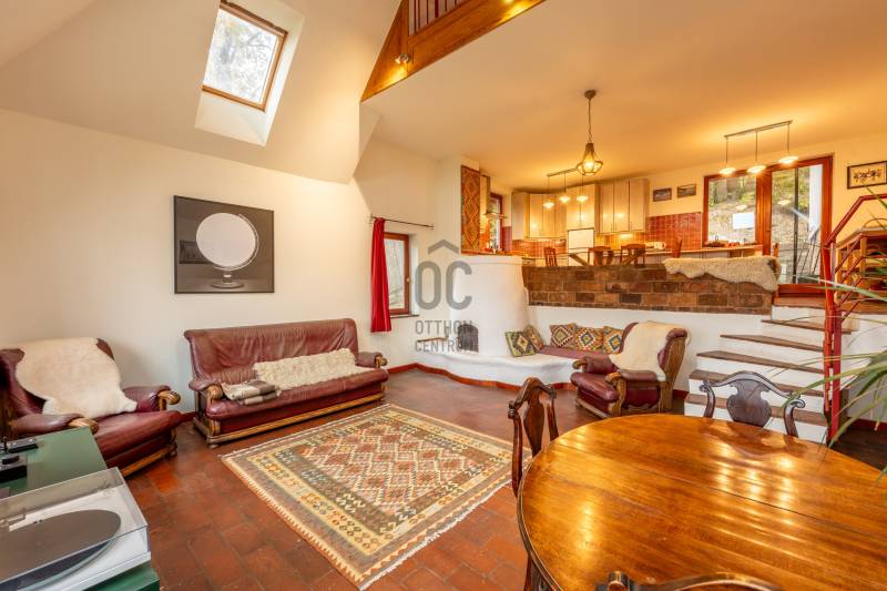 Pilisszentlászló – Egyedi tervezésű, panorámás családi ház a Pilis nyugalmábanA település gyönyörű erdei környezetben, a Visegrádi-hegységben, Szentendre és Visegrád között a Szentlászlói-medencében fekszik, Szentendrétől 9 km-es távolságban.Az ingatlan 203 m²-es (bruttó 302 nm), egyedi tervezésű, 1079 m²-es telken helyezkedik el, csendes utcában, így tökéletes választás azok számára, akik a természet közelségét, a nyugalmat és a kényelmet egyaránt értékelik.A ház tágas, napfényes nappalija és szinteltolásos, amerikai konyhás elrendezése ideális teret biztosít a családi együttlétekhez. Az ingatlanban összesen 6 szoba és 3 fürdőszoba áll rendelkezésre, így bőséges helyet kínál akár nagyobb családnak vagy vendégek fogadására is. A kialakított önálló lakrész biztosítja a két generációs együttélés lehetőségét.A búbos kemence nemcsak a hideg napokon nyújt kellemes meleget, hanem különleges hangulatot teremt az otthon központjában. A panorámás kilátás minden napot ünneppé varázsol, ahogy a környező hegyek és völgyek látványa elénk tárul. Fő paraméterek: 2005-ben épültbelterület, lakóingatlanytong, 10 cm dryvit szigetelésközművek: víz, villany vanfűtés fa tüzeléssel megoldott, (búbos kemence, puffertartállyal, padlófűtéssel)három szinteskét generáció számára is ideális, külön lakrésszel rendelkezik260 cm belmagasságnyugati tájoláskétállásos garázzsal rendelkezikcsendes, nyugodt környezetjó közösségWaldorf iskola a közelbenA település biztonságos, barátságos közösséggel rendelkezik, a környék pedig kiváló lehetőséget kínál túrázásra, kerékpározásra és erdei sétákra.Ez az ingatlan ideális választás minden korosztály számára, családoknak vagy mindazoknak, akik csendre, friss levegőre és minőségi életre vágynak a Pilis szívében.Érdeklődjön bizalommal, és tapasztalja meg személyesen ennek az otthonnak a varázsát – segítek, hogy a legjobb döntést hozza meg új élete következő fejezetéhez!