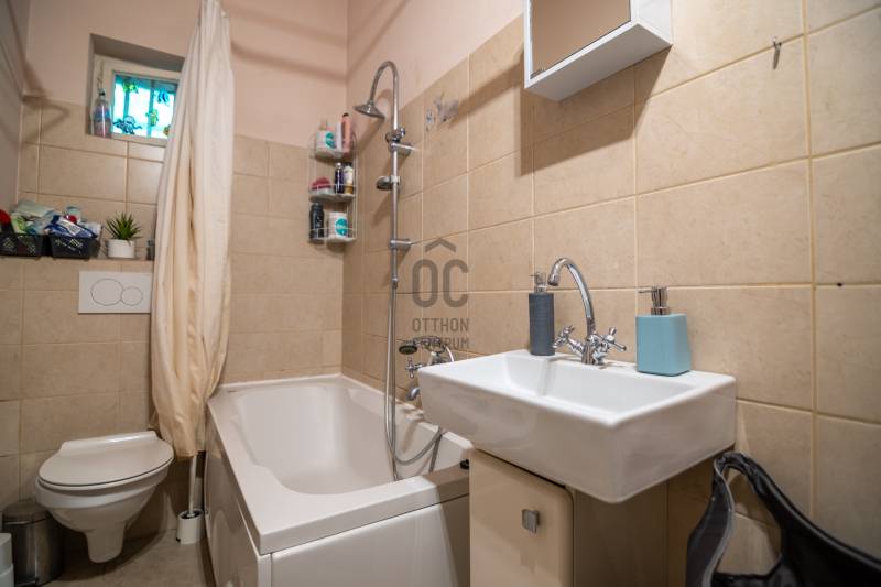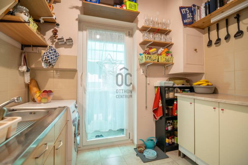 Újpest kertvárosi részén, csendes utcában eladó egy földszintes - sorházi jellegű - , 2 szobás lakás kis kerttel.A LAKÁS alapterülete eredetileg (és tulajdoni lap szerint) 29 nm. 10 éve a mellette lévő garázs átépítésével egy plusz szoba és mosdó került kialakításra . Így jelenleg a hasznos alapterület 41,5 nm.Jó méretű , kényelmes konyhája van,- közvetlen terasz-kapcsolattal. A képek között szerepel egy látványkép is, - akár ilyen konyhája is lehet!Fürdőszoba kádas, és wc is van benne, illetve egy külön vendég-wc is helyet kapott.A lakás bejárata előtt van egy kis fedett terasz, a konyha előtt pedig egy nagy - szintén fedett - terasz. Körülötte néhány tőke szőlő teszi intimmé a teraszt és a házat.A saját használatú kertrész egy gk-beállót is tartalmaz.A társasház közös udvaráról egy saját tároló is elérhető, melynek mérete 6,5 nm.A lakás fölött esetlegesen beépíthető tetőtér van.MŰSZAKI ÁLLAPOT:- 2016-ban teljes műszaki felújítást kapott, melynek során kicserélték az elektromos vezetékeket, fűtéskorszerűsítés történt, és a konyhát és fürdőszobát is felújították. Előtérben és vizes helyiségekben járólap van, nappaliban a régi fa parketta lett szépen felújítva. A falakra Caparol márkájú bio lélegző festék került, mely mosható, megbízható és dekoratív.Az épület kívülről 10 cm szigetelést is kapott,- a külső festése már az új tulajdonosára vár.A lakás fűtéséről egy régi típusú, Junkers márkájú gázkazán gondoskodik, a szobákban radiátoros hőleadással, konyhában és fürdőszobában padlófűtéssel, fürdőszobában kiegészítésként törölközőszárítós radiátor is van. Hűtésről - és persze kiegészítő fűtésről, ha szükséges , - egy a nappaliban elhelyezett klímaberendezés gondoskodik.KÖLTSÉGEK:közös költség 12.000,-Ftrezsi: mintegy 20 ezer Ft.AZ ÉPÜLETBEN 4 lakás található, - sorházi jelleggel,- a meghirdetett lakás szélső lakás. Építése az 1940-es évekre tehető.Maga a társasház 16 lakásból áll - összesen 3 épületben a közös társasházi kerten belül.LOKÁCIÓ: - Újpest kellemes hangulatú kertvárosában található, jellemzően családi házak szomszédságában. Csendes utcából megközelíthető. 5-10 perces sétával több BKK járat is elérhető (buszok, villamos), Újpest Városközpont mintegy 1,5 km-re található.AJÁNLOM mindazoknak , akik távol szeretnének élni a város zajától, mégis fontos nekik, hogy a belváros forgatagát elérjék 20 percen belül.Akik szívesen veszik, hogy van egy kis kerjük, ahol kis konyhakertet/ virágoskertet lehet kialakítani, vagy a kutyus kedvére szaladgálhat. Akiktől nem áll távol, hogy 1-2 apró részletet maguk véglegesítsenek rajta, saját ízlésükre alakítva.Azonnal költözhető.