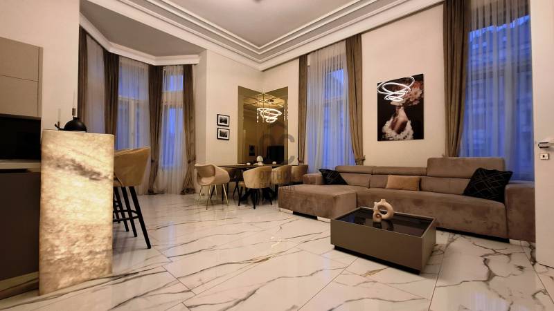 Luxus felújított lakás eladó a Szent István körúton, a Vígszínház mellettEladásra kínálunk egy magas műszaki és esztétikai színvonalon felújított, elegáns polgári lakást Budapest egyik legkedveltebb belvárosi részén, a Szent István körúton, közvetlenül a Vígszínház szomszédságában.Az ingatlan egy kiváló állapotú, liftes polgári épület második emeletén található.A lakás tágas, nagyvonalú terekkel, jól átgondolt alaprajzzal és egymástól elkülönülő hálószobákkal rendelkezik, melyek maximális kényelmet és nyugalmat biztosítanak. A kialakítás az igényes, nagypolgári életstílust tükrözi, modern luxussal ötvözve.A belsőépítész által megtervezett enteriőrben egyedi, prémium minőségű bútorok, minőségi burkolatok és kortárs designer darabok harmonikusan egészítik ki egymást.A felhasznált anyagok és berendezések magas minőséget képviselnek: Marazzi burkolatok, Grohe és Villeroy & Boch szaniterek, Gorenje Ora Ito konyhai gépek, valamint Kare, BoConcept és Einholz designer bútorok.A lakás teljes berendezéssel együtt eladó, mely a vételár részét képezi, így az ingatlan azonnal költözhető.Ez az otthon nem csupán egy lakás, hanem egy életstílus a belváros szívében.