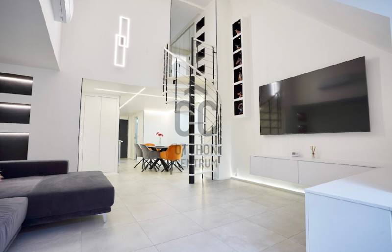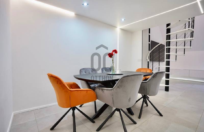 Designlakás a Mérleg utcában – 70 m²-es, olasz tervező által megálmodott exkluzív terekV. kerület | 70 m² | 2 szoba | DNY | utcai nézetÁr:156.900.000.-Budapest legelőkelőbb utcájában, a Mérleg utcában kínáljuk megvételre ezt a 70 m²-es, modern luxusélményt nyújtó, kifinomultan megalkotott designlakást. A belső tereket egy elismert olasz tervező álmodta meg, így minden részlet harmóniát, eleganciát és tudatos térszervezést tükröz.A tágas terek, a DNY-i tájolás, valamint a professzionálisan kialakított LED-fényjátékok együtt teremtik meg azt a különleges atmoszférát, amely nappal világos és visszafogottan elegáns, este pedig exkluzív, prémium lounge-hangulatot sugároz.Az ingatlan elrendezése:– tágas nappali– külön hálószoba– teljesen gépesített konyha– a képeken látható teljes bútorzattal együtt kerül átadásraA bejárat előtt található 21 m²-es közös terasz a belvárosban ritkaságnak számít, a házban pedig közös tároló biztosítja a kényelmet. A lakás utcai nézetű, mégis kellemesen nyugodt, így elegáns városi életteret kínál.Környék – Budapest legexkluzívabb pontjai pár lépésreA Mérleg utca környezete Budapest kulturális és gasztronómiai központja. Néhány perc sétán belül elérhető:•Szent István Bazilika – Budapest egyik ikonikus épülete•Szabadság tér – elegáns, zöld park diplomaták épületei között•Duna-part – esti sétákhoz és panorámás pillanatokhoz•Erzsébet tér & Deák tér – a város közlekedési és kulturális csomópontja•Pesti Vigadó és a Belvárosi kulturális negyed•Michelin-ajánlott éttermek, elegáns kávézók, boutique üzletek és luxusszállodákEz a Mérleg utcai lakás nem csupán ingatlan, hanem életstílus: modern olasz design, ragyogó belvárosi fények, és Budapest legszebb látnivalói közvetlen közelről.