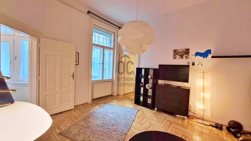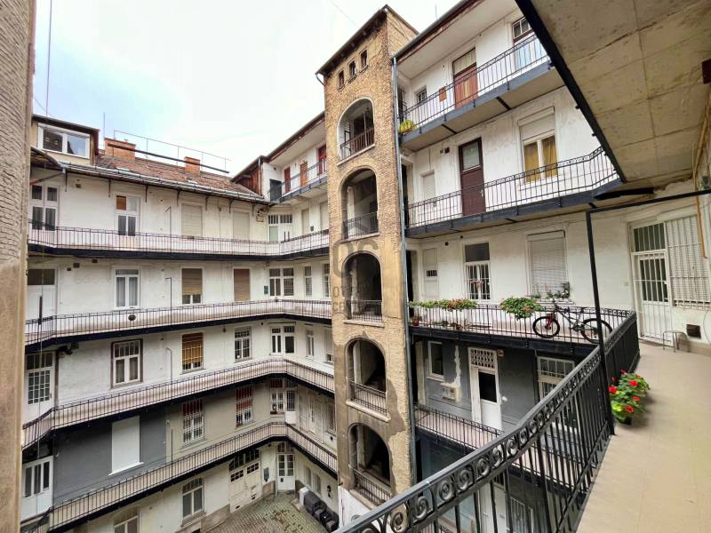 ..Ingatlanról :- Eredetileg 2 külön helyrajzi számon lévő lakást egybenyitották, jelenleg 1 számon szerepel. (átalakítási terv a képek között)- Az épület önkormányzati rendelet alapján \"egyedi védett érték\", folyamatos a karbantartás, idén befejezik a függőfolyosók renoválását.- Jó állapotú- Világos lakás- Tájolás : NY, D- 2. emeleti- Liftes ház- Belmagasság 3,8 m- Belső udvarra néző ablakok redőnnyel- Biztonsági bejárati ajtó- Gáz (cirko)- 1 x 16A- Minden közmű egyedi mérővel- Közös költség 22.360.-, ami tartalmazza a felújítási alapot- Homlokzat, lépcsőház állapota jó- Udvar rendezett- Lakások száma 46Az ingatlan kettéoszthatósága miatt, kiváló lehetőség befektetők számára, illetve azoknak, akik a különlegességet és értékállóságot keresik.