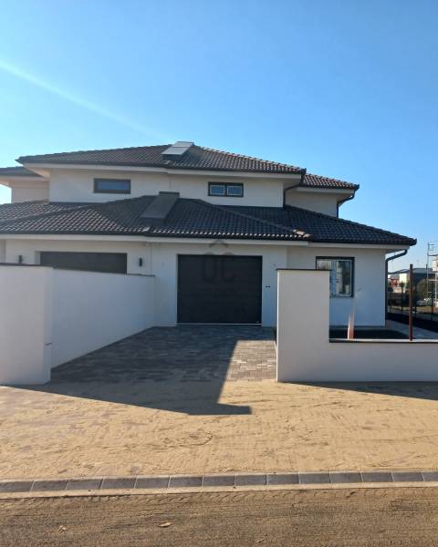 Mediterrán jellegű prémium kategóriájú ikerház, 161 m2 alapterülettel és 513 m2 telekterülettel, kiemelkedően magas műszaki tartalommal, eladó.Debrecen- Pallag legfeltörekvőbb városrészében, minden igényt kielégítő nappali+ négy hálószobás, teraszos, garázzsal rendelkező ikerház.Közművesített, közvilágítással ellátott, fásított, gondozott utcában, összetartó közösség várja az új lakókat.Tervezésnél főszempont volt a kényelmes, praktikus, de mégis elegáns élettér kialakítsa. Természetesen a lakóegységek intimitása külön figyelmet kapott ( dupla külső fal, magas, épített kerítés)A műszaki tartalomból néhány fontos adat:- teherhordó falak PTH 30 N+F falazóblokk + 15 cm külső hőszigetelés- a ház adottságai alapján, optimálisra méretezett, költség hatékony fűtési rendszer: padló fűtéssel, mennyezethűtéssel, hőszivattyús rendszerrel.- nyílászárói: korszerű műanyag szerkezetűek, kívül szinezett, fokozott hőszigetelésű és 3 rétegű üveggel, külső belső könyöklők/párkányok kompozit kő borításúak- árnyékolás: elektromos működtetésű, aluminium redőny színes, beépített tokkal- tágas világos terek, 48nm-s a konyha- étkező –nappali ahonnan közvetlen kijárat nyílik a 24nm- s kertkapcsolatos, Nyugati tájolású teraszra- 2 fürdő szoba + háztartási helyiség- minőségi, stílusos burkolatok, szaniterek és belső ajtók még kiválaszthatóak- a kivitelezés már előre haladott állapotban van- az ár tartalmazza a beépített lakás szellőztető rendszert és vízlágyító berendezést, a riasztó és kamerarendszer előkészítését, kerítéstA részletes műszaki leírással és a házzal kapcsolatos egyéb információkkal állok szíves rendelkezésére.Hívjon és egyeztessünk a részletekről!Tervezett átadás: 2026 tavasz.Bankfüggetlen hitelügyintézést banki kollégánk teljeskörűen és ingyen bonyolítja Önnek irodánkban, da akár otthonában is!Debrecen, Pallag, Barackvirág, ikerház, családi ház, kert, eladó, telek, 5 szoba, új, zöld,