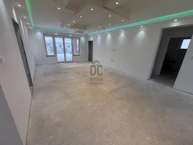 Megvételre kínálunk egy földszintes, nappali + 3 szobás, új építésű családi házat, amely modern kialakításával és praktikus elrendezésével ideális választás fiatal családok számára.Az ingatlan jól átgondolt térszervezéssel rendelkezik:-központi elhelyezkedésű tágas 43nm-es nappali–étkező,- közvetlen kapcsolattal a konyhához, melyhez tartozik egy kamra is,- a nappaliból kijárás a részben fedett 48 nm-es teraszra, mely gyönyörű a DNY-i fekvés révén- a nagy méretű hálószobák elkülönítetten, a nappali hátsó és oldalsó részében kaptak helyet.- fürdőszoba mellett mosókonyhát is kialakítottak,- az utcafront felől kialakított 22 nm-es fűtött HÖRMANN kapus garázs az előszobából is közvetlenül megközelíthető.Ez az otthon nemcsak szép, hanem korszerű és energiatakarékos is:Fűtés és meleg víz:28 KW-os teljesítményű kondenzációs gázkazán, padlófűtéses hőleadással.Hűtésről a nappaliban és mindhárom hálószobában inverteres MULTI SPLIT klíma gondoskodik, melyek egész évben komfortos hőérzetet biztosítanak.Kulcsrakész kivitel, amely tartalmazza többek között:- teljes építési folyamatot alaptól a tetőig,- járdaburkolatot az épület körül,- gépészeti és elektromos kiépítést,- homlokzati szigetelést, nemesvakolatot,- belső vakolást, festést,- hideg- és melegburkolatokat,- szanitereket, kapcsolókat, lámpatesteket,- belső ajtókat.Most ajándék extrákkal vásárolhatja meg álmai házát Debrecenben, a NI Hungary Kft. közelében, a Kishegyesi útból nyíló csendes utcában!A 854 nm-es TELJES TELEK KÖRBEKERÍTÉSE:– 2 méter magas betonkerítés,– az utcafronton egyedi igényekhez igazodó kivitelezéssel,+1 FÜRDŐSZOBA KIALAKÍTÁSA IGÉNY SZERINTMindez BENNE VAN az árban!Ne hagyja ki ezt a kiemelkedő ajánlatot, ahol az extra kényelmi megoldások és az ajándék kivitelezések nem jelentenek plusz költséget!Bővebb információért és megtekintéssel kapcsolatban forduljon hozzám bizalommal!Ez az otthon tökéletes választás lehet, ha új építésű, modern és értékálló ingatlant keres Debrecenben.