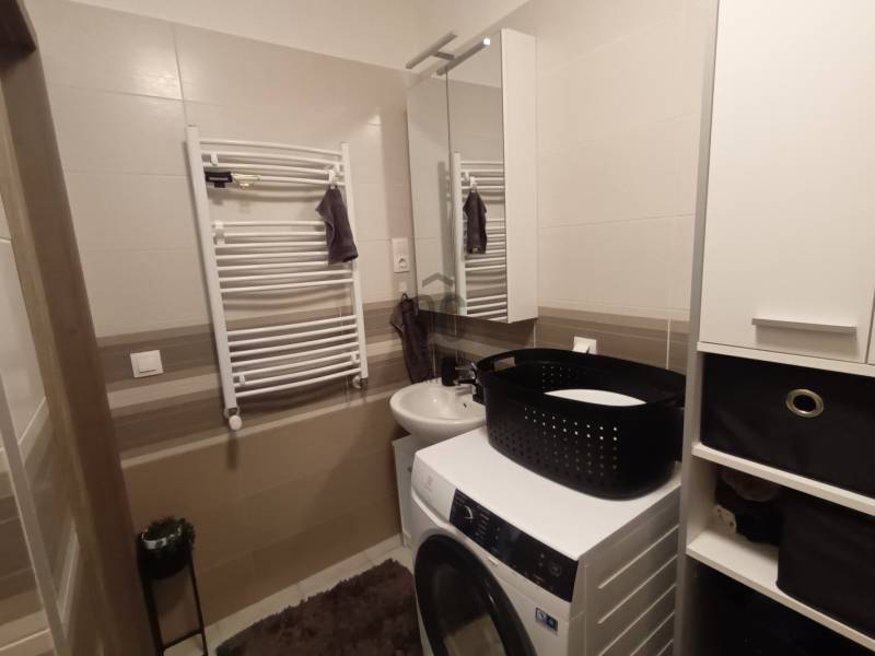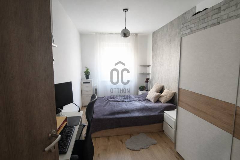 Eladásra kínálunk egy földszinti lakást Debrecen belvárosában. Az ingatlan 2022-ben épült és kiváló állapotban van.Az ingatlan főbb jellemzői:•Amerikai konyhás, világos, déli fekvésű nappalival rendelkezik, amely egész nap napfényes.•A kellemes hőmérsékletről hűtő-fűtő klíma gondoskodik minden évszakban, amely a nappaliban található meg.•A fürdőszobában padlófűtés és törölközőszárítós radiátor található, így a kényelem és a praktikum is biztosított.•A fűtés házközponti rendszerű, egyedi mérőkkel, ami rendkívül alacsony rezsiköltséget eredményez.•A nappaliból egy 5,40 m²-es, fedett teraszra léphetünk ki, amelyhez kizárólagos használatú, elkerített kert tartozik, amely kiválóan alkalmas pihenésre, grillezésre vagy akár kisállattartásra.•A terasz és a kert együttes, külső használatú területe összesen 58 m², ami ritka előny egy lakóparki ingatlannál.•Gondozott, parkosított belső udvar biztosítja a nyugodt, zöld környezetet.•Az állattartók számára külön előnyt jelent a nagy, kizárólag a társasház lakói által használható kutyafuttató.•Az épületek tetején napelempark működik, amely hozzájárul a fenntartható és energiatakarékos működéshez.A lakópark elhelyezkedése kiváló: tömegközlekedési csomópont mindössze néhány perc sétára található, így a város bármely pontja könnyen elérhető, valamint megtalálható gyógyszertár, kisbolt, fogorvos és fodrász, így a mindennapi ügyintézés kényelmesen helyben megoldható.A lakás egy 2022-ben épült, korszerű társasházban helyezkedik el, és ideális választás mind fiatal pároknak, mind idősebbeknek, akik kényelmes, földszinti otthont keresnek rendezett környezetben, továbbá azok számára is alkalmas, akik egy modern, energiatakarékos, jó elosztású és világos otthonra vágynak Debrecen egyik legkedveltebb, folyamatosan fejlődő városrészében.További információkért és megtekintésért kérem hívjon bizalommal!Az alaprajz tájékoztató jellegű!