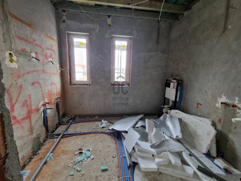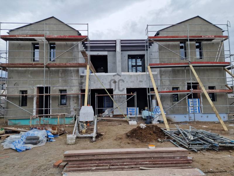 Eladó újépítésű utcafrontos ikerház Budapest XVIII. kerület Almáskert csendes mellékutcájában.137 nm hasznos alapterületű, amerikai konyhás nappali, 4 hálós, 2 fürdőszoba-wc, háztartási helyiség, kamra, garázzsal, terasszal, erkély és saját kerttel.Műszaki tartalom (részlet)- falazata 30-as Leier 10 cm-es grafitos szigeteléssel, lábazat 12 cm XPS szigetelés- válaszfalak 10 cm-es Leier tégla- födémen 20 cm-es kőzetgyapot szigeteléssel- hőszivattyú padlófűtéssel- 3 rétegű külső nyílászárókA fűtése hőszivattyús, padlófűtés az egész házban-választható vagy a nappaliban 3,5 kw-os klíma, vagy klíma kiállás kiépítése minden szobában!-elektromos tolókapu,-elektromos garázskapu,-napelem előkészítés,-komplett kamerarendszer riasztóval beépítveAmi vételár részét képezi:Meleg burkolat: 5000ft/m2 amely tartalmazza a filc alátétet és a szegélyt is.Hideg burkolat: 5000ft/m2 amely tartalmazza a fugát és a burkolat váltókat is.Belső tartozékok, szaniter árak:-beltéri ajtó kilinccsel 80.000 Ft/db-kád tartozékaival 80.000 Ft/db-csap 20.000 Ft/db-mosdó 20.000 Ft/db-plusz víz csatorna kiállás kérésre 50.000 Ft/db-villanykiállás fejegységenként 30.000 Ft/db-Kerti csap ára kompletten szerelve: 100.000 Ft/dbszaniterek belső nyílászárók készültségi foktól függően választhatók.Megbeszélés és egyeztetés alapján kérhetők plusz extrák és változtatások!Az ingtlan Almáskert újépítésű kertvárosi részén lesz található, központhoz közel, jól megközelíthető helyen.A lakás az összes jelenleg futó támogatásra jogosult!Az ingatlan 30% önerővel lefoglalható!Várható átadás 2026 május vége.Amiben segítünk :független Hitelszakértő, ügyvédi háttér!!Hívjon a hét bármelyik napján további információért!
