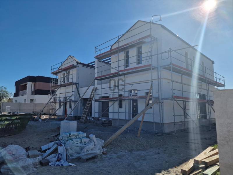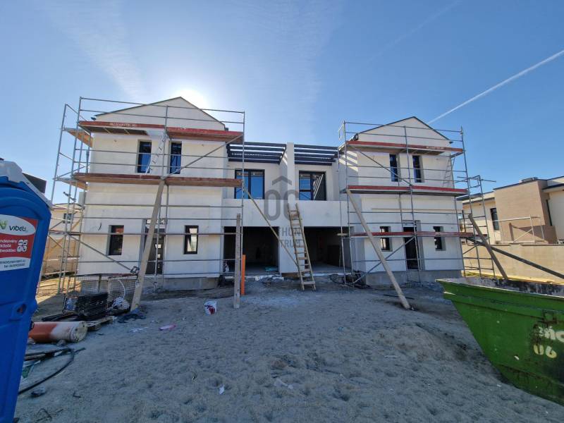 Eladó újépítésű utcafrontos ikerház Budapest XVIII. kerület Almáskert csendes mellékutcájában.137 nm hasznos alapterületű, amerikai konyhás nappali, 4 hálós, 2 fürdőszoba-wc, háztartási helyiség, kamra, garázzsal, terasszal, erkély és saját kerttel.Műszaki tartalom (részlet)- falazata 30-as Leier 10 cm-es grafitos szigeteléssel, lábazat 12 cm XPS szigetelés- válaszfalak 10 cm-es Leier tégla- födémen 20 cm-es kőzetgyapot szigeteléssel- hőszivattyú padlófűtéssel- 3 rétegű külső nyílászárókA fűtése hőszivattyús, padlófűtés az egész házban-választható vagy a nappaliban 3,5 kw-os klíma, vagy klíma kiállás kiépítése minden szobában!-elektromos tolókapu,-elektromos garázskapu,-napelem előkészítés,-komplett kamerarendszer riasztóval beépítveAmi vételár részét képezi:Meleg burkolat: 5000ft/m2 amely tartalmazza a filc alátétet és a szegélyt is.Hideg burkolat: 5000ft/m2 amely tartalmazza a fugát és a burkolat váltókat is.Belső tartozékok, szaniter árak:-beltéri ajtó kilinccsel 80.000 Ft/db-kád tartozékaival 80.000 Ft/db-csap 20.000 Ft/db-mosdó 20.000 Ft/db-plusz víz csatorna kiállás kérésre 50.000 Ft/db-villanykiállás fejegységenként 30.000 Ft/db-Kerti csap ára kompletten szerelve: 100.000 Ft/dbszaniterek belső nyílászárók készültségi foktól függően választhatók.Megbeszélés és egyeztetés alapján kérhetők plusz extrák és változtatások!Az ingtlan Almáskert újépítésű kertvárosi részén lesz található, központhoz közel, jól megközelíthető helyen.A lakás az összes jelenleg futó támogatásra jogosult!Az ingatlan 30% önerővel lefoglalható!Várható átadás 2025 IV. negyedév.Amiben segítünk :független Hitelszakértő, ügyvédi háttér!!Hívjon a hét bármelyik napján további információért!