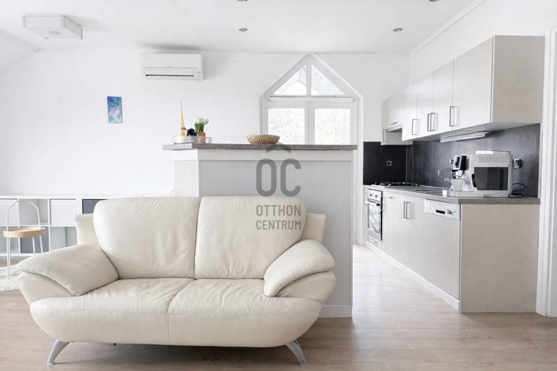 Eladó a II. kerületben, a Parlamentre és a Margitszigetre panorámás, 80 m²-es, 2. emeleti, 3 szobás, világos, erkélyes lakás.Fontosabb tudnivalók a lakásról:•Nappali: 42,33m², Szoba: 8,44m², Szoba: 9,27m², Fürdő: 4,84m², Köz.: 6,68m², Wc: 1,8m².•Terasz: 2,23m², Erkély: 3,75m².•Az alagsorban tartozik hozzá egy tároló: 9,47 m².•Összes lakóterület: (80,06 m² + 2,23 m² + 3,75 m² + 9,47 m²) = 95,51 m².•A lakásban található terek tágasak és világosak, az ablakok zöldre néznek.•A lakás klímával felszerelt.•Fűtése gáz (cirko).•Osztatlan közös tulajdon.Fontosabb tudnivalók a házról:•Az épület karbantartott, homlokzata 5 éven belül lett felújítva.•Az udvaron sütésre alkalmas lugas, tégla kemencével, kb.12 fő részére biztosít kikapcsolódást.•3 lakásos sorház egy lépcsőházában egy 4 szintes lakás, második emeleti lakása.•A közös költség 10.000.- Ft.Fontosabb tudnivalók a környékről:•Csodálatos panoráma a Margitszigetre és a Parlamentre.•Zöld környezetben Modern játszótér és Sportpálya található.•Áldás utcai iskola és óvoda, Árpád úti szakközép iskola.•Közelben a Rózsakert bevásárló központ.•A társasház fákkal és növényekkel körbe-körbe ültetve.•Autóbusz: 29, 9, 91, 191, 291, 923, 934, 960, 931, 111, MU5, Metró: M2, Villamos: 17, 19,Ez a lakás ideális választás lehet mindazok számára, akik szeretnének egy csendes zöld környezetben, de jól megközelíthető környéken élni, ahol fantasztikus panoráma van és a mindennapok kényelme biztosított.Egyedi igényekre szabott lakáshitelekkel állunk rendelkezésére.Bankfüggetlen hitelcentrumunk az országban elérhető összes bank és hitelintézet ajánlatát versenyezteti az Ön számára díjmentesen.Munkatársaink nagy szakmai tapasztalattal várják Önt az előre egyeztetett időpontban akár a normál munkaidő után is.