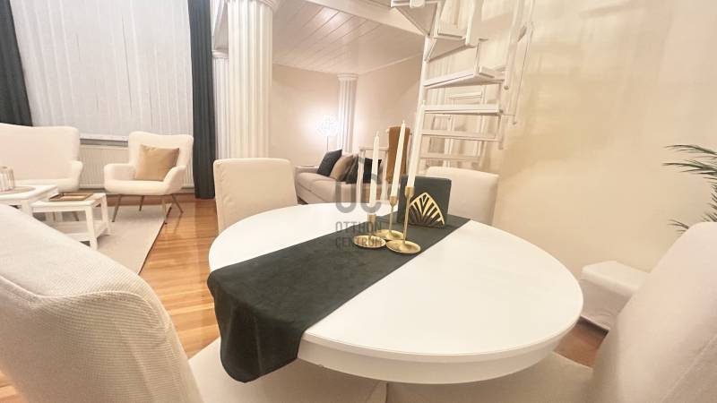Eladó – 67 m²-es plusz 9 m²-es galéria,1. emeleti hangulatos lakás Budapest Terézvárosban - Start+ hitellel elérhetőLépjen be ebbe a gyönyörű 1. emeleti lakásba, amely egy történelmi épületben található Terézváros szívében – csupán néhány lépésre az Operettszinháztól, Budapest legjobb színházai, kávézói és éttermei ölelésében. Ez a 67 m²-es otthon, kiegészítve egy 9 m²-es beépített galériával, a klasszikus elegancia és a modern kényelem egyedülálló kombinációját kínálja. Elrendezés és adottságok: - Méret: 67 m² - Emelet: 1. emelet egy jól karbantartott, történelmi épületben - Épület: gyönyörű, autentikus 20. század eleji építészet, lifttel - Előszoba - Különálló konyha, fürdőszoba, WC és tároló – praktikus kialakítás a mindennapi kényelemhez - Tágas, utcára néző nappali galériával – természetes fényben úszik - Hangulatos hálószoba, amely az udvarra néz - Belmagasság: 4,5 méter – tágas, elegáns térérzet - Teljesen bútorozott és felszerelt – azonnal költözhető vagy kiadható Felújítás és állapot:Az ingatlan körülbelül 20 éve teljes körű felújításon esett át, beleértve a víz- és villanyvezetékek cseréjét, új padlóburkolatot, valamint központi gázfűtés kiépítését. A közelmúltban új légkondicionáló berendezések, modern konyhai gépek és friss festés került beépítésre. A lakás megőrizte klasszikus karakterét, miközben modern kényelmet kínál. Lokáció és üzleti potenciál: - Kivételes lehetőség, hogy tulajdonosa legyen egy ingatlannak Budapest egyik legélénkebb városrészében, néhány lépésre az Operettszínháztól, színházak, éttermek, kávézók, éjszakai élet és nevezetességek közvetlen közelében. - Felkapott, folyamatosan fejlődő környék, garantált értéknövekedés - Tehermentes ingatlan, gyors ügyintézés - Kiváló választás hosszú távú kiadásra. Közlekedés:Kiváló tömegközlekedési kapcsolatok – metró, villamos, troli és busz mind a közelben.Akár egy kompakt, mégis elegáns belvárosi otthont keres, ez a lakás tökéletes egyensúlyt kínál báj, kényelem és elhelyezkedés tekintetében.Ha Ön is szeretne részesévé válni Budapest dinamikusan fejlődő ingatlanpiacának, ne habozzon kapcsolatba lépni velem – akár hétvégén is elérhető vagyok!