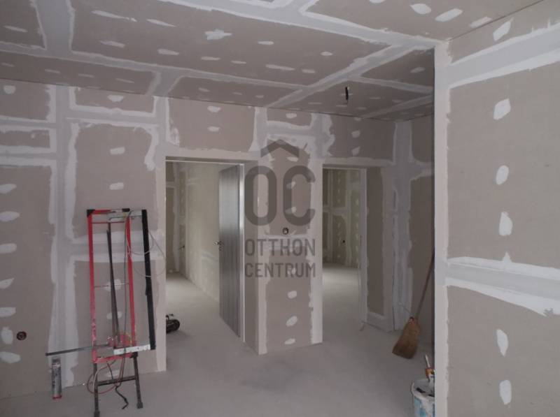 Eladóvá vált 3 szobás 2 fürdőszobás 110 nm-es ház Pápán.Az ingatlan az Erzsébet város részben, csendes mellékutcában fekszik.A közelben megtalálható élelmiszer bolt, gyógyszertár, buszmegálló, óvoda, illetve a húsipar.A ház az 1950-es években épült téglából.A felújítás az elmúlt évben kezdődött, és jelenleg is tart.Megújult a tetőszerkezet, és új cserépfedést kapott, és 30 cm-es salakgyapotot fektettek a födémre.Külső falazatra 10 cm-es hőszigetelés került, az ablakokat 3 rétegű hőszigetelt műanyagra cserélték.Belső falakat gipszkartonnal burkolták, minden helyiség padozata szigetelése és betonozása megtörtént, melybe padlófűtés került.A villany, és vízhálózatot is teljesen újra tervezték.A 110 nm hasznos alapterület 3 szobából, 2 fürdőszobából, konyhából, nagy nappaliból, kamrából, és közlekedőből áll.Csatlakozik a nappalihoz egy 15 nm-es terasz, valamint a ház végében található a 12 nm-es kazánház, melyhez WC is tartozik.A villamos energia ellátást 3 fázis biztosítja.A fűtés padlófűtésen keresztül történik, de az új tulajdonos feladat lesz, hogy milyen energia forrással, hisz lehetőség van vegyes tüzelés, gáz, és hőszivattyús megoldásra is.Kiépítésre került a klímák előkészítése is.A hirdetési ár tartalmazza a burkolást, a burkolatok kiválasztása az új tulajdonosra vár bizonyos összeg határig, továbbá az egy színű falfestést.Az udvar térkövezésének alapozása is megtörtént.Minden további egyéb munkálatok külön megállapodás tárgyát képezik.A lehetőség adott, hogy pár hónapon belül a vevő teljesen felújított családi házba találja meg otthonát.Várom megtisztelő hívását, ha felkeltette érdeklődését a hirdetés.