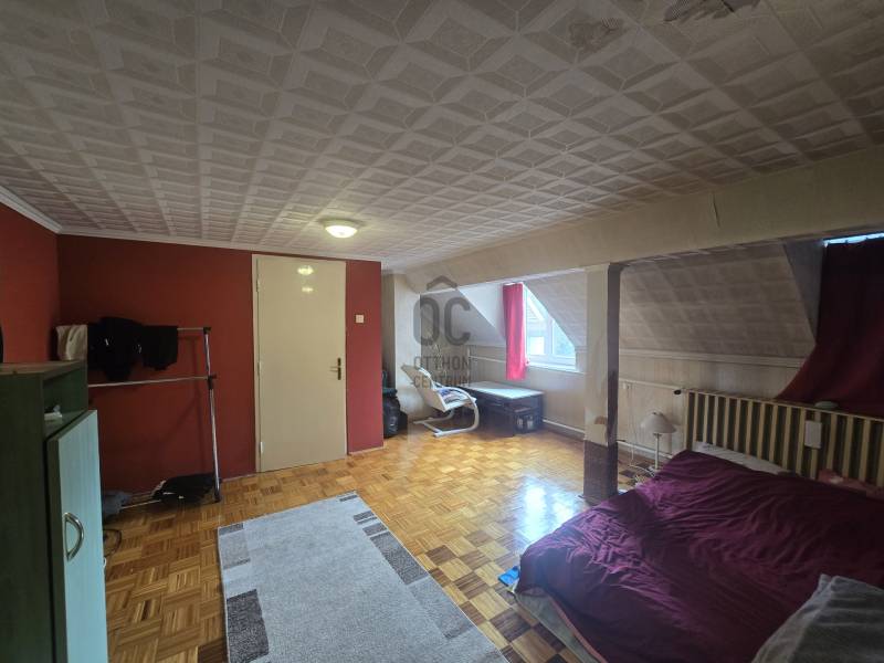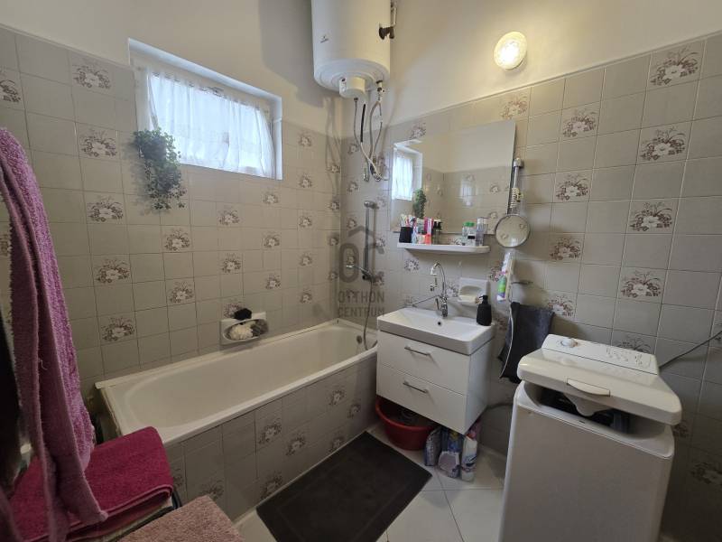 Gyöngyös központi részén a belvárosban, csendes, mégis jól megközelíthető helyen kínálom eladásra ezt a 106 m²-es, tetőteres házrészt, amely egy 414 m²-es, zárt udvarban helyezkedik el, autóbeállási lehetőséggel és kis kerttel.A földszinten egy tágas, 11 m²-es előszoba fogad, ahonnan minden helyiség megközelíthető.- Nappali: 20 m²- klímatizált- Konyha–étkező: 15 m²- modern konyhapult- Fürdőszoba: 5 m²-káddal- WC: 1 m2 - külön helyiségben- Kamra: 2 m2 - polcokkal ellátvaAz emeleten két világos hálószoba (26 m² és 12 m²) kapott helyet, valamint egy praktikus gardrób (2,8 m²).Az ingatlan gázcirkós fűtéssel rendelkezik, de vegyes tüzelésű kazán is be van kötve. A földszinti nappaliban klíma biztosítja a kellemes hőmérsékletet.A nyílászárók műanyagok, redőnnyel ellátva, az udvar térkövezett és karbantartott.A pince 60 m²-es, tárolásra vagy műhelynek is kiváló.Ideális választás azoknak, akik belvárosi, mégis nyugodt környezetben keresnek tágas, csendes otthont. Kérdés esetén állok rendelkezésére, csak hívnia kell.