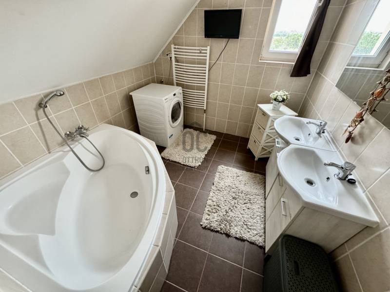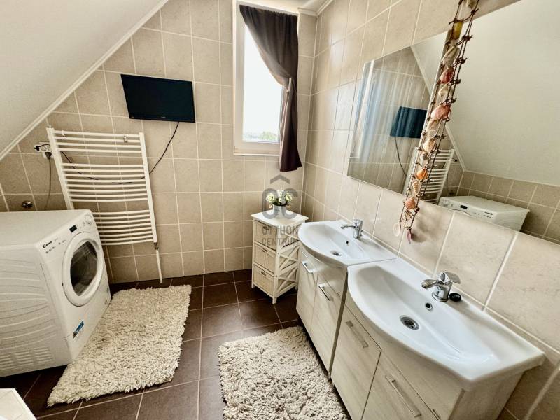 Ráckeresztúr egyik CSENDES utcájában található ez a 3 SZINTES, 5 tágas szobával rendelkező családi ház. GYÖNYÖRŰEN FELÚJÍTOTT!!!BEFEKTETŐKNEK IS AJÁNLJUK: ha szolgalmi utat létesít, a telek hátsó része megközelíthető. A telek ketté osztható és így még egy ház felépítése is lehetséges.- KANDALLÓ!- 4db. KLÍMA!!!- áram: 1 x 20Amper, 2 x 16Amper, 3 fázis bent van- cseréptető, B30-as téglából épült, 1994-ben épült, 5cm szigetelés- betonfödémes, erős szerkezetű- tető: 15cm szigetelés- vadonat új kondenzációs gázkazánFöldszint:- a földszinten össze lehet vonni az étkezőt és a nappalit és egy AMERIKAI-KONYHÁS-ÉTKEZŐS-NAPPALIT lehetne ott létesíteni- így felszabadulna a jelenlegi konyha helyiség és abból egy lakószobát lehetne kialakítani- mivel van a felszínen egy 2 beállásos garázs, így a ház alatti garázst SZUTERÉN-LAKÁSKÉNT lehetne használni- pl. a garázsból egy szobát alakítani és egy fürdőszobát és egy konyhát kialakítani- ez akár egy NAGYSZÜLŐNEK vagy egy SZÁRNYAT BONTÓ FIATALNAK is egy kiváló lehetőség- aki nem alakítja át, az MŰHELYKÉNT is használhatja és mellette élvezheti a WHIRLPOOL-os MOZI-ÉRZÉST és a SZAUNÁT, mellette jelenleg zeneszoba van- továbbá van egy ÓRIÁSI FEDETT TERASZ, egy KIVILÁGÍTOTT SZALETLI PÁLMÁKKAL, egy FEDETT SÜTÖGETŐ-BOGRÁCSOZÓ, egy KERTI SZERSZÁM-TÁROLÓ és egy 2 BEÁLLÁSOS GARÁZS SZERELŐAKNÁVAL- továbbá egy kis dolgozó szoba és egy tusolós fürdőszoba-WC is található ezen a szintenFelső emelet:- 3 tágas szoba, egy nagy és kényelmes WC-helyiség, egy kádas-fürdőszobaAlsó szint:- Garázs/Műhely, Wellness-Mozi-Szauna szoba, ZeneszobaKert:- tároló, 2 beállásos garázs szerelőaknával, fedett terasz, fedett sütögető-bográcsozó és egy óriás telek lehetőségekkelAutópálya a közelben. Buszmegálló 6-7 perc gyalog az utca végén (Martonvásár, Ercsi, Százhalombatta és Ráckeresztúr járattal). Martonvásárból vonatok is indulnak, akár Budapestre. Ajánlom nagycsaládosoknak, összeköltözőknek, többgenerációs megoldásnak és befektetőknek (telekmegosztás stb.).Várom megkeresését!