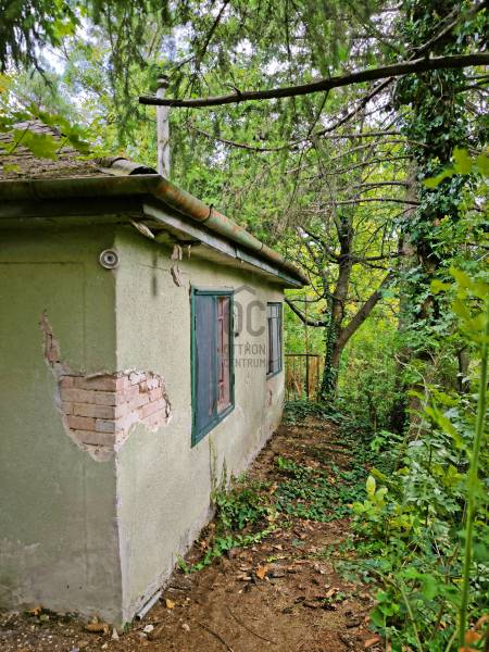 Buda egyik legcsendesebb részén, Csúcshegyen található ez a kiváló adottságokkal rendelkező ingatlan, amely most új tulajdonosát keresi. Egy kis befektetéssel ideális lehet hobbikertnek, nyaralónak, vagy akár egy saját otthonnak is!AZ INGATLANAz enyhén lejtős, 1350 m²-es telken egy régi, rossz állapotú 22 m²-es gazdasági épület található, amely szerepel a térképmásolaton. Az ingatlan áramellátással és ásott kúttal rendelkezik.Jelenleg a hegyen építési tilalom van érvényben, de az állagmegóvás engedélyezett. Mivel az épület a térképmásolaton szerepel, így lehetőség van annak felújítására, vagy bővítésére. Az itteni telkek 5%-a beépíthető, a maximum épületmagasság pedig 4,5 méter lehet.Az ingatlan tehermentes, lakáshitel nem igényelhető rá.Művelési ág alól ki lett vonva, tehát azonnal birtokbavehető.A fényképen jelzett, közeli ingatlan szintén eladó, így akár a kettő együtt is megvásárolható.LOKÁCIÓCsúcshegy külterületnek számít, az utcában azonban többnyire állandó lakosok élnek. A hegyen elérhető a vezetékes internet, szemétszállítás és a postai szolgáltatás. A telek földúton közelíthető meg (Vadászles utca).2 km-en belül: buszmegálló, vasútállomás, bölcsőde3 km-en belül: iskola, boltok, non-stop gyógyszertár, fogorvosi rendelő, étterem, cukrászdaKiváló lehetőség mindazok számára, akik szeretnék élvezni a vidéki élet nyugalmát Budapest peremén.Az ingatlanon található bejelentett épület további lehetőségeket kínál, legyen szó nyaralóról, vagy akár egy valódi otthon kialakításáról!Ha felkeltette érdeklődését, keressen bizalommal! Ha nem tudom fogadni a hívását, később visszahívom!