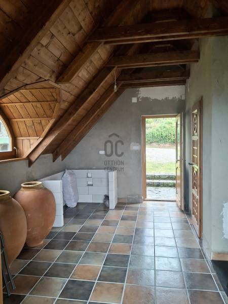 Badacsonytördemicen a Római útról megközelíthető nyaralót ajánlok figyelmébe!A hegy közepén fekvő ingatlanból gyönyörű panoráma tárul elénk a Balatonra, a hegy bazaltorgonáira és Szigligetre.Kiépített út vezet a házhoz, ahol több autó számára kialakított parkoló biztosított.KIEMELT MEGBÍZÁS, CSAK AZ OTTHON CENTRUM KÍNÁLATÁBAN!A lépcsőzetes kialakítású telek nem túl nagy mérete ( 860 m2 ) optimális, gondozása sok időt nem igényel, szőlővel betelepített.A telek minden pontjáról megcsillan a Balaton víztükre, de a ház háta mögött a hegy is pazar látképet ad.A környező pár szomszéd után pihentető sétára indulhatunk az erdőbe vagy a hegytetőre.A ház falazata tégla, bazaltkő támfalakkal kiegészülve.A tető hódfarkú héjazatot kapott, szigetelt.A pinceszinten az előtér, kamra és bortároló kialakítás külön lakrésszé változtatható.Az emeleten a nagy légterű nappali- konyha és fürdőszoba befejezésre vár.A nyílászárók fenyőből készültek, dió lazúrral.A villany bekötésre került, a szennyvízhez az emésztő biztosított.Víz jelenleg nincsen, ciszternával vagy kútfúrással megoldható.Gazdasági épület, kifüggesztés köteles.A Badacsony a Tapolcai- medence legmagasabb, ikonikus hegye.A szőlőtermesztésről, borozóiról híres, kedvelt üdülőhely.A közelben több strand és étterem várja a vendégeket.(Az adatok kizárólag a megbízóink által rendelkezésünkre bocsátott információkon alapulnak. Fentiekre tekintettel az adatok teljességéért, helyességéért és aktualitásáért nem vállalunk felelősséget. Az árváltozás, adatmódosítás és közbeni értékesítés jogát fenntartjuk, mindezekért jogi felelősséget nem áll módunkban vállalni.)Ha kérdése merült fel vagy szeretne időpontot egyeztetni, várom megtisztelő hívását!