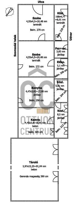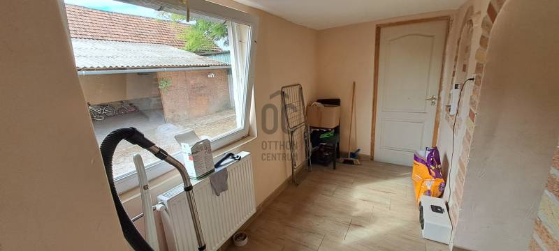 Tisztelt Érdeklődő!Ha olyan otthont keres, ahol a nyugalom és a kényelem egyszerre jelen van, akkor ez a csanádpalotai családi ház éppen Önnek szól.Az Asztalos P. Kálmán utcában található ingatlan mindössze pár percre van a városközponttól – autóval és kerékpárral is pillanatok alatt elérhető minden, amire a mindennapokban szüksége lehet.A vegyes falazatú, 106 m²-es ház két tágas szobával, konyhával, kamrával, fürdőszobával, közlekedőkkel és előszobával várja új tulajdonosát. A helyiségek burkolatai igényesek: a szobákban laminált padló, máshol járólap, a kamrában pedig betonburkolat található. A fűtés gázkazánnal megoldott radiátorokon keresztül, amely a meleg vizet is biztosítja, így minden adott az otthonos, kényelmes mindennapokhoz.A ház, részben megújult, a kamra és a hátsó közlekedő befejezésre vár. A felújított részen már korszerű műanyag nyílászárók lettek beépítve, míg a még befejezésre váró területeken a régi fa ablakok és ajtók maradtak meg.Az ingatlan teljes közművel rendelkezik: a villamosenergia, a vezetékes víz, a csatorna és a gáz mind be van kötve, így új tulajdonosnak nem kell további beruházásokkal számolnia.A 842 m²-es telek mérete ideális: elég nagy ahhoz, hogy kényelmesen élhessen, mégis könnyen gondozható. Az udvaron fedett terasz és tároló is található, bár ezek későbbi bontása elképzelhető. Az ingatlan folytatásában egy 91 m²-es, téglaépítésű, betonozott tároló kapott helyet, amely sokrétűen hasznosítható, akár műhelynek, akár hobbiszobának is.Energetikai tanúsítvány: vanEnergetikai besorolás: GCO2 kibocsátás: GA ház 90 napos határidővel költözhető.Ha élhető, csendes környezetben szeretne otthonra találni, ne habozzon!Hívjon most, és foglaljon időpontot a megtekintésre!Csanádpalotáról bővebben itt: http://www.csanadpalota.huLegyen tisztában pénzügyeivel, mielőtt elkötelezi magát! Ebben díjmentesen az Ön rendelkezésére áll bankfüggetlen hitelközvetítőnk.Vevőinket profi és kedvező díjazású ügyvédi háttérrel is segítjük a szerződéskötés során.Az ingatlanról rövid bemutató videó is készült. Ha ezt a hirdetést az Otthon Centrum weboldalán nézi, akkor a videó azonnal indítható a képgaléria elején. Ha egy másik weboldalon találta ezt a hirdetést, kérem, nyissa meg az Otthon Centrum weboldalát, kattintson a „Regisztrációs szám keresése” menü pontra, és írja be ezt a regisztrációs számot a keresőbe: H509305 Itt meg tudja tekinteni az ingatlanról készült videót és még több képet, vagy írjon nekem, és szívesen elküldöm a felvételt, képeket.#otthoncentrummako #makoiingatlan #csanadpalotaeladohaz #ingatlan #otthoncentrum #eladohaz #ingatlanpiac #nyugalom #hagymatikum #forsale #oc #hitel #ocmako #biztositas #realestate #veledmindenlepesnel #kerteshaz #csaladihaz #ingatlankozvetites #almokatepitunk #falusicsok
