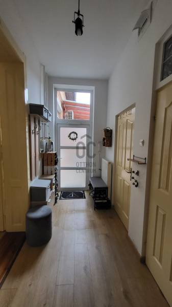 Debrecen kedvelt belvárosi részén eladó egy kitűnő állapotú és elrendezésű, 90 m²-es, napfényes házrész önálló terasz kapcsolattal. -beton alapon 50 cm-es tégla falazat +10 cm-es hőszigetelés,-új tetőszerkezet betoncserép héjazattal-felújított elektromos hálózat-műanyag nyílászárók, redőny, klíma-fűtése: kondenzációs kazánnal-90 m² alapterület + 11 m² terasz-76 m² saját pince (több helyiség kialakítással, sportolásra, borospincének, stb)-160 m² elkerített, saját parkosított kert öntözőrendszerrel, 240x90-es süllyesztett medencével-20 m²-es faszerkezetes garázs-filagória sütőhellyelTökéletes infrastruktúra, belvárosi lokáció, minden a közelben. Csendes környék, kellemes otthon.