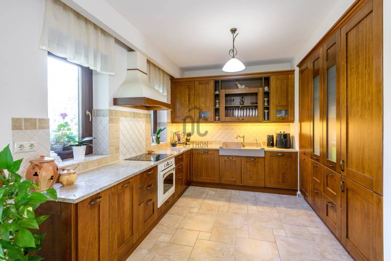 Sopron egyik legkedveltebb részén, az Ágfalvi úti lakóparkban kerül eladásra egy 2010-ben épült, 1238 m²-es telken álló, különleges családi ház, amely az igényesség és a gondosan megtervezett élettér tökéletes példája.A HÁZ JELLEMZŐI- nettó lakóterület: 260 m²- építés éve: 2010- téglaépítésű, minőségi anyagokból- alumínium borítású fa ablakok, tömör kőrisfa beltéri ajtók- kovácsoltvas korlát az emeletre vezető lépcsőn – igazi éke a háznak- fűtés: Vaillant turbó gázkazán, padló- és falfűtés helyiségenként szabályozhatóan- melegvíz ellátás: gázkazán + napkollektor (250 l puffertartály)- nagy teljesítményű klíma az egész ház hűtéséreTÁGAS VILÁGOS BELSŐ TEREKA földszint központja a nappali–étkező–konyha egysége, ahol a természetes fény, a fa meleg tónusai és a finom részletek együttesen teremtenek meghitt, elegáns hangulatot.A tömör fából készült, gránit munkalapos konyhabútor nemcsak stílusos, de a minőség garanciája is.A nappali közvetlen teraszkapcsolattal rendelkezik, így a kert szinte a lakótér folytatása.KÉNYELMES, ÁTGONDOLT EMELETI ELRENDEZÉSAz emeleten HÁROM HÁLÓSZOBA kapott helyet:-a szülői lakrész saját fürdőszobával és gardróbbal,- másik két szoba közös fürdőt használ,- a tágas közlekedő kellemes, világos teret biztosít.ALSÓ SZINT – kényelem és praktikusságA földszinten helyet kapott:- egy vendég- vagy dolgozószoba,- egy tágas háztartási helyiség szaunával, tusolóval és WC-vel,- valamint egy duplagarázs elektromos garázskapukkal.Minden itt van, ami a mindennapi kényelmet szolgálja – logikus elrendezésben, minőségi kivitelezésben.A KERT - MAGA A NYUGALOMAz 1238 m²-es, parkosított kert gondosan megkomponált:- robotfűnyíró,- Wellis jakuzzi - barabás téglából épített grillező és kerti konyha,- árnyas pihenősarok, ahol a zöld növények között valódi kikapcsolódás várja.- kerti faházEz a kert nem csupán szép — élettér, ahol minden nap egy kicsit nyaralás.Egy ház, ahol a részletek számítanak.Ez az otthon nem hivalkodó, hanem elegánsan kifinomult.Minden anyag, minden vonal és minden szín azt sugallja:itt a nyugalom, a minőség és a természet közelsége egyensúlyban van.ELHELYEZKEDÉSKönnyen megközelíthető kertvárosi környezetA város infrastruktúrája, iskolák, bevásárlási lehetőségek és zöld területek egyaránt elérhetők.KÖLTÖZÉSA költözés gyorsan megoldható.Ha egy olyan otthont keres, amely egyszerre sugároz eleganciát, kényelmet és természetes harmóniát,akkor ez a ház Sopronban, az Ágfalvi úti lakóparkban Önre vár.Hitelre van szüksége?Az Otthon Centrum az ország egyik legnagyobb és legmegbízhatóbb hitelközvetítőjeként, teljes körű és díjmentes hitelügyintézéssel, biztosításkötéssel áll rendelkezésére!Kérje személyre szabott ajánlatunkat Kollégáinktól!