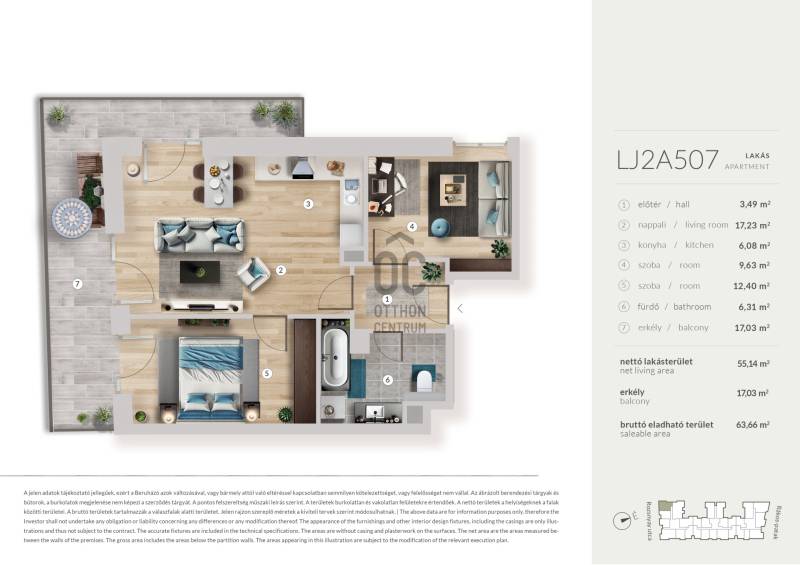 Erkély mérete: 17 m2