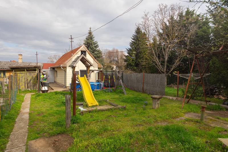 XVII. kerületben Rákoscsabán csendes mellékutcában kínálunk megvásárlásra egy földszinti, 88 nm-es lakást (jelenleg egy 40 nm-es és egy 48 nm-es külön bejáratú lakásból áll, de a két lakás könnyedén egybe nyitható) elkerített saját, összesen 290 nm-es kerttel, tárolóval. A telken egy kétszintes lakóépületben 3 lakás lett kialakítva, két földszinti és egy emeleti lakás. A kert végében még egy különálló kisebb lakóház áll, ez a negyedik lakás a telken. A hirdetés tárgya a két földszinti, összesen 88 nm-es lakás, melyek jelenleg külön bejáratokkal rendelkeznek, de akár egybe is nyithatók, és egy tágas, világos nagy lakás alakítható ki az egybenyitással. A két lakás kizárólag egyben eladó. A teljes lakóépület földszinti homlokzata dryvit hőszigetelést kapott, a teljes földszint feletti tető rész is felújításra került az ereszcsatornával együtt. A nagyobbik, 48 nm-es eladó lakásban a nyílászárók egy része cserélve lett műanyagra, itt az elektromos hálózat is megújult. A fűtést itt gázkazán biztosítja. A kisebbik szobák alatt mindkét lakásban egy-egy pince is kialakításra került. A kisebbik, 40 nm-es lakásban az elektromos hálózat új, ide a csatorna és a gáz nincs bevezetve, a másik lakásból beköthető. Ebben a lakásban jelenleg fürdőszoba és konyha nincs kialakítva, fűteni kályhával lehet. Ennek a lakásnak van egy fedett terasza, mely beépíthető. A környék rendezett, csendes, buszmegálló pár perc séta. A lakóközösség csendes, kulturált.