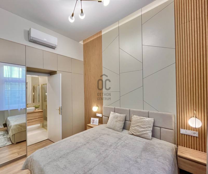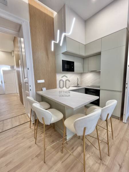 Eladó a Belső 6. kerületben, az Andrássy útnál, de mégis csendes utcában -- egy nettó 62 nm-es , 3. emeleti (lift van), nappali + 2 hálószobás, 2 fürdőszobás (duplakomfortos), hűtő-fűtő klímákkal felszerelt, felújított lakás!LAKÁS- A prémium minőségű felújítás mindent érintett! (víz- és elektromos vezetékek, burkolatok, nyílászárók, fürdőszobák, konyha stb.)- Berendezéssel, VADONATÚJ bútorokkal, gépesítve kerül értékesítésre- Élhető elosztás – 2 kényelmes hálószoba, valamint egy tágas, amerikai konyhás nappali- 2 fürdőszoba és egy külön vendégmosdó- A kellemes hőérzetről új kondenzációs kazán, valamint hűtő-fűtő klímák gondoskodnak- A rezsiköltségek egyéni fogyasztás alapján fizetendők, minden lakás külön mérőórával rendelkezik- Per-, teher- és igénymentes, saját helyrajzi számmal rendelkezik, 1/1-es tulajdonHÁZ- A lakóközösség kifejezetten barátságos és összetartó- A ház külső és belső homlokzata egyaránt jó állapotú, rendszeresen karbantartott- A tiszta, rendezett lépcsőházból kényelmesen megközelíthető minden szint a liftnek köszönhetőenKÖRNYÉK, TÖMEGKÖZLEKEDÉS- Budapest lüktető belvárosában, mégis egy nyugodt, csendes utcában helyezkedik el, ahol zavartalanul lehet pihenni- A környéken elegáns üzletek, valamint a világ egyik legszebb Operaháza várja- Elég néhány lépést tenni, és máris az Andrássy út elegáns világában találod magad, Budapest ikonikus főutcáján- Pár perc séta csupán a Deák Ferenc tér vagy a Bajcsy-Zsilinszky és az Arany János utcai metrómegálló, így a város teljes közlekedési hálózata könnyedén elérhető- Lélegzetelállító építészeti részletek és történelmi épületek minden irányban- Rövid séta a Duna-partig, ahol bármikor feltöltődhetsz- Számtalan gasztronómiai élményEz az ingatlan tökéletes választás azoknak, akik a luxust, a minőséget és a nyugodt otthoni életteret keresik Budapest szívében egy karnyújtásnyira a kulturális és gasztronómiai élményektől.Amennyiben elnyerte tetszését és szeretné megtekinteni az ingatlant, hívjon bizalommal!