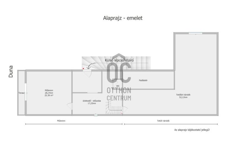 Patay László egyedülálló ráckevei otthona – művészeti paradicsom vízpartonBemutatjuk Ráckeve egyik legkülönlegesebb ingatlanát: egy ritka lehetőséget, hiszen nem csupán egy házról van szó, hanem Patay László, a Munkácsy-díjas festőművész egykori otthonáról és műterméről. Az épület a város szívében, az Árpád híd lábánál, közvetlen vízparti fekvéssel, saját stéggel és rendkívüli történeti és művészeti értékkel.A helyszín és elhelyezkedés:A telek 318 nm, de amit igazán különlegessé tesz, az a saját stéggel közvetlen vízpart, amely romantikus hangulatot és csendes menedéket kínál a Duna partján. Az ingatlan a belvárosban található, könnyű megközelítéssel, mégis elvonultan, ami ritka ötvözete a nyugalomnak és központi elhelyezkedésnek.Az épület felépítése:Az ingatlan három, teljesen különálló lakrészre tagolt, plusz egy nagy pince, így kiválóan alkalmas több generáció, vendégek vagy akár művészeti célra való hasznosításra.Dunaparti, udvari lakrész (~39 nm):- Külön bejárattal- Szoba, konyha, fürdőszoba- Tágas terasz, ahol a Duna közelsége és a ház bensőséges hangulata egyszerre érzékelhető.Utcafrontos lakrész (~102 nm)- Külön udvari bejárat- Hálószobák és nappali: 3 szoba + nappali- Konyha, fürdőszoba és külön WC- Ez a rész dominánsabb, reprezentatívabb, kiváló akár tulajdonosnak, akár bérbeadásra.Tetőtéri műterem (~104 nm)- Külön, külső feljáró az udvar felől- Különleges, fényben fürdő tér, amely egykori festőműteremként szolgált- Tetőterasz a Dunára néző kilátással- WC + két tetőtéri tároló helyiség- Ez a rész a legszemélyesebb: olyan, mintha Patay László épp az utolsó ecsetvonás után hagyta volna ott a művészi eszközeit – megőrizve az alkotó szellemiségét és atmoszféráját.Pince (~35 nm)- Külön udvari bejárattal- Extra helyiséget biztosít raktározásra, archívumnak, kis műhelynek vagy akár borospincének.Műszaki állapot:Minden közmű bent van. A fűtésrendszer kiépített, de jelenleg nincs kazán – rendelkezésre állnak viszont cserépkályhák, amelyek rusztikus, klasszikus hangulatot kölcsönöznek. A kémények felújításra szorulnak, ami ugyan beruházást jelent, de cserébe lehetőséget ad az autentikus stílus megőrzésére. Az ingatlan felújítandó, így az új tulajdonos szerető kézzel formálhatja tovább a teret a saját elképzelései szerint.Művészettörténeti jelentőség:Patay László (1932–2002) Munkácsy-díjas festőművész, aki Ráckevén élt és alkotott. Mesterei között olyan nagyok szerepeltek, mint Barcsay Jenő, Fónyi Géza és Szőnyi István. Az ingatlan a festő saját otthona és műterme, amely ma is őrzi az ő szellemiségét. A Ráckeve Városi Képtár is az ő életéhez szorosan kapcsolódik: az Árpád-híd alatt működő galériában állandó kiállítás mutatja be munkásságát. Lehetőségek és vízió:Ez az ingatlan nem „csak ház” – ez egy élő művészeti örökség. Az új tulajdonos előtt sokféle út nyílik:- Magánlakás + műterem: Folytatható a művészi hagyomány, a tetőtéri műterem valódi alkotóműhellyé válhat ugyanúgy, mint korábban.- Művészeti központ / rezidencia: Használható alkotóműhelyként, művészeti workshopok, festőtáborok helyszíneként.- Bérbeadás: A három különálló lakrész külön-külön is kiadható – ez lehetővé teszi befektetői célt is.Hangulat és atmoszféra:Az ingatlan romantikus, művészi lelkületű, minden zugban érezni azt a nyomot, amit egy mester hagyott maga után.A vízparti fekvés és a stég különösen meghitt, lassú reggelekhez, naplementékhez kiváló – ez nem pusztán otthon, hanem menedék a lélek számára. A tágas teraszok, a tetőtéri kilátás és a fényáteresztő műterem ablakai együtt olyan inspiráló környezetet teremtenek, amilyet ritkán találni.Összegzés:Ez az ingatlan egy igazi ritkaság: nem csak földrajzi és befektetési értékkel bír, hanem egy jelentős magyar művész életének és kreatív örökségének tangibilis része. Aki ide beköltözik, nemcsak házat vásárol – egy darab kultúrát, történelmet, és művészetet örököl.Ez az ingatlan a \"Hűség csomag\" megbízási portfólióhoz tartozik. Részletek az Otthon Centrum weboldalán.