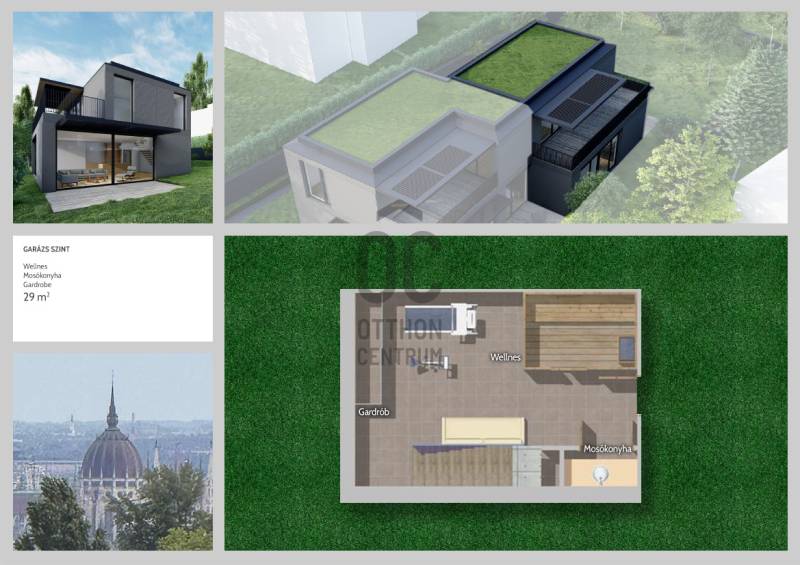 Fedezze fel ezt a kivételes adottságú, luxusminőségben kivitelezett, örökpanorámás otthont, amely a hegyoldal csendjét és Budapest egyik legkeresettebb városrészének kényelmét ötvözi. A közel 190 m²-es lakás hatalmas teraszokkal, privát kerttel, opcionálisan kültéri medencével és igény esetén kialakítható tetőterasszal kínál modern, kényelmes és jövőálló életteretPrémium műszaki tartalom – A++ energiahatékonyság, jövőálló megoldásokAz ikerházfél tervezésekor a magas minőség, az energiahatékony működés és a kényelmes mindennapok biztosítása volt a fő szempont. A kivitelezés és a gépészet minden elemében a legmodernebb technológiákat vonultatja fel.Energetika és gépészet:-A++ energiahatékonyság-DAIKIN hőszivattyús hűtés–fűtés-Padlófűtés minden helyiségben-Helyiségenként távolról szabályozható termosztát-ZENDER hővisszanyerős, páraszabályozós szellőztető rendszer(pollen- és porszűrővel)-Központi porszívó rendszerSzerkezet és nyílászárók:-15 cm külső hőszigetelés-3 rétegű ALUPROF emelő-toló nyílászárók-Motoros fixscreen árnyékolók előkészítésOkosotthon és biztonság:-Okosotthon-előkészítés-Automata öntözőrendszer előkészítés-Riasztó- és kamerarendszer előkészítés-Okos ajtó távoli ujjlenyomat-vezérlésselMegjelenés és külső terek:-Egyedi, modern, letisztult homlokzati design-Nagyméretű, panorámás teraszok: 12 m², 27 m², 27,2 m²-Saját, 386 m²-es privát kert-Opcionálisan 3×7 m-es kültéri medenceLokáció – Zöldövezeti luxus a budai hegyek ölelésében:Az ikerházfél Budapest III. kerületének egyik legkedveltebb, nyugodt mellékutcájában található. A környék ideális azoknak, akik egyszerre szeretnének csendes, természetközeli környezetben élni, mégis közel maradni a városi infrastruktúrához.Környezeti és életmódbeli előnyök:Hegyvidéki, exkluzív, csendes környezetÖrökpanorámás kilátás – a környék sport- és zöldterületeire isKiváló levegőminőségNyugodt családi házas övezet, minimális forgalommalKözeli túra- és futóútvonalak, panorámás sétalehetőségekGolf, kerékpár, természetjárás – sportos életmódnak ideálisInfrastruktúra és közlekedés:Pár perc autóval a GOBUDA Mall, Stop Shop, Kolosy tér, Óbuda főtereGyors közlekedési kapcsolatok — autóval és tömegközlekedéssel isKözelben elérhető a British International School, így családok számára kiemelten kedvezőBölcsődék, óvodák, iskolák, orvosi rendelők, sportlétesítmények – minden könnyen elérhető--------------Az ikerházfél elrendezése – Funkcionális, háromszintes kialakítás:GARÁZS SZINT – 29 m²A ház praktikus kiszolgálószintje, amely tehermentesíti a lakótereket:-Wellness helyiség-Mosókonyha-Gardrób / tárolóTökéletes helyszín edzéshez, mosáshoz, szezonális tároláshoz és wellness funkciókhoz.FÖLDSZINT – 76,8 m² + 12 m² és 27 m² teraszokA földszint a közösségi élet tere – panorámás nappalival, fantasztikus kertkapcsolattal és nagy üvegfelületekkel.Innen nyílik a saját, 386 m²-es kert, ahol akár medence is kialakítható.Helyiségek:-Előtér (4,7 m²)-WC (1,8 m²)-Gardrób (5,1 m²)-Fürdő (4,4 m²)-Hálószoba (11,4 m²) – ideális vendég- vagy dolgozószoba-Amerikai konyhás nappali (49,4 m²) – közvetlen teraszkapcsolattalKét irányba is teraszok nyílnak, így a kert több funkcionális részre is tagolható: napozóterasz, kültéri étkező, pihenőkert vagy játszórész.EMELET – 47,7 m² + 27,2 m² teraszA felső szint a család privát élettere, csodás panorámával.Helyiségek:-Közlekedő (5,8 m²)-Fürdő (5,0 m²)-Szoba (15,2 m²)-Szoba (11,5 m²)-Szoba (10,2 m²)A hatalmas, panorámás terasz tökéletes a reggeli kávéhoz, napozáshoz vagy esti pihenéshez, és igény esetén akár tetőterasz továbbfejlesztése is megoldható.PARKOLÁS:2 db teremgarázshely(kötelezően megvásárolandó – 2 × 14 M Ft)Tervezett átadás: 2026 I. negyedév