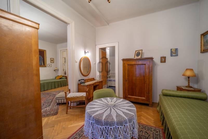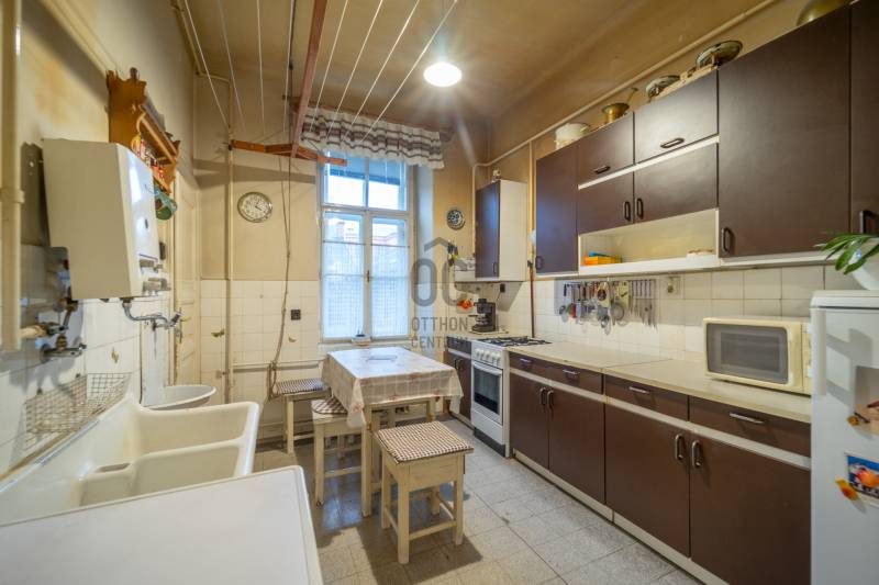 **Palotanegyed • Ahol a tereknek tartása van. A hangulatnak meg… vonzereje.**124 nm nagypolgári lakásVan lakás, ami szép.És van lakás, ami hat rád.Ez a 124 nm-es, 4 szobás + hallos nagypolgári otthon az utóbbi.Belépsz, és egyszerűen jól áll neked.A magas falak, a nagy terek, a régi parketta halk recsegése — mind azt a finom, kicsit titkos báli hangulatot hozzák, ami egyszerre elegáns és… igen, van benne valami ellenállhatatlan könnyedség.Az a fajta lakás, ahol a vendég belép és megáll:„Ez igen.”A Palotanegyed egyik legszebb részén vagyunk, egy sarokra a Múzeumkerttől.Itt még van ritmusa az utcáknak, a környéknek illata, a délutánoknak fénye.A lakás főbb erősségei:124 nm nagyvonalú, levegős tér4 szoba + tágas hall – minden szobának karaktere vanEredeti részletek, amik nem próbálnak meg tetszeni — egyszerűen vonzóakKiváló beosztás: családnak, otthonnak, elegáns irodánakNéhány perc séta a Múzeumkert és a kulturális negyed minden szépségeEz az a lakás, amit nem lehet elmesélni.Ezt érezni kell.A falaknak tartása van. A tereknek mélysége.És van benne valami, amit nem lehet tanítani:a régi Pest finoman sodró magabiztossága.Ha ezt keresed, itt lesz dolgotok egymással.