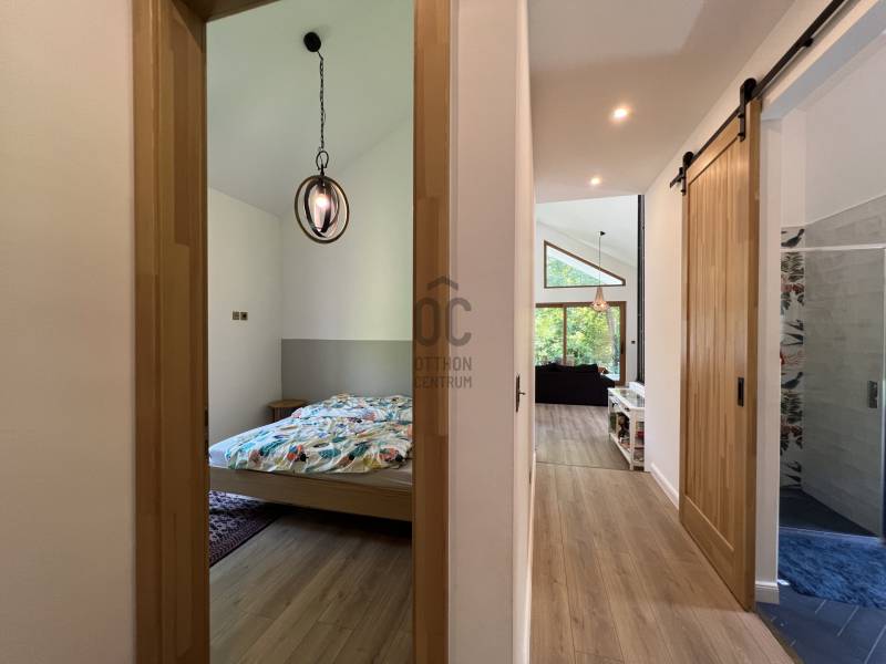 VARÁZSLATOS ZÖLD KÖRNYEZET, EGYEDÜLÁLLÓ STÍLUS és a BALATONI ÉLET hármasa találkozik ebben a páratlan ingatlanban.Balatonföldvár legszebb részen, az erdővel körülölelt Karika völgyben, saját részre építetett, exkluzív adottságokkal rendelkező, kiváló minőségi alapanyagokból, bútorokkal berendezett, napfényes családi ház/nyaraló keresi új gazdáját!A 2020-ban épült ingatlan, egy gyönyörűen parkosított 890 nm-es telken fekszik.Hasznos alapterülete 83 nm, melyhez egy 19 nm-es déli tájolású fedett terasz csatlakozik.Jellemzői:*3 hálószóba, konyha-étkező-nappali, fürdőszoba, WC, terasz*Porotherm 30K klímatégla*nyílászárók nagy keménységű trópusi fából, alumínium redőnnyel és szúnyoghálóval*egyedi fa beltéri ajtók, tolóajtó*Varilight réz villanykapcsolók*CLIFF konyhabútor*Beépített konyhai gépek (mosogatógép, sütő, mikrohullámú sütő, hűtőszekrény, páraelszívó)*egyedi stílusú gránit mosogató*bioetanol kandallóA ház klímájáról padlófűtés (cirkó gázkazán) valamint hűtő-fűtő klíma gondoskodik.A magas minőségű szigetelésnek köszönhetően, a nagy belmagasság ellenére, nagyon alacsony a fűtési költség.A ház egészéről a teljes műszaki dokumentáció rendelkezésre áll.Ne hagyja ki ezt a páratlan ingatlant!Bővebb felvilágosításért várom megtisztelő hívását!