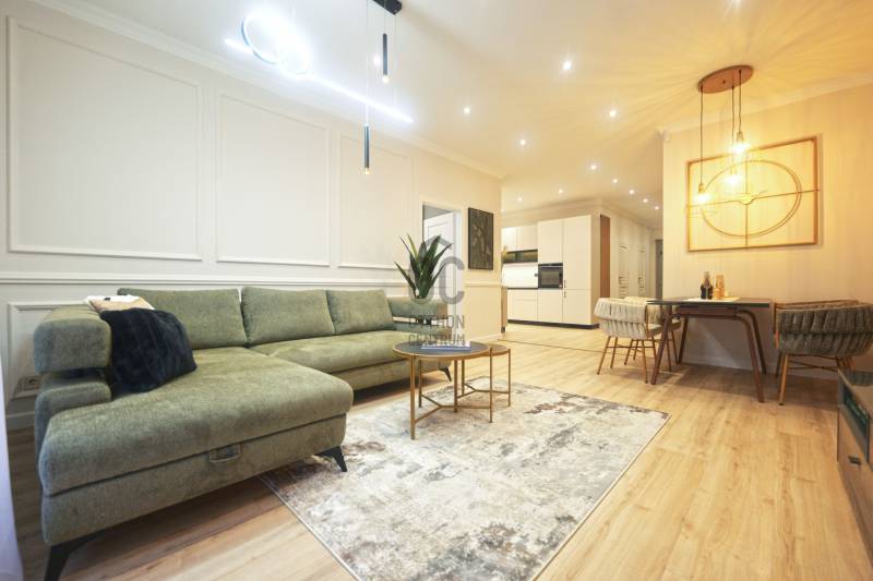 Prémium minőségben felújított 84 m²-es lakás Németvölgy szívében- Eladásra kínálunk egy teljes körűen, magas minőségben felújított, 84 m²-es lakást a kedvelt Németvölgyben, a Márvány utca Alkotás utca feletti szakaszán.- A liftes, kiváló állapotú épület első emeletén található lakás bejárata a frekventált, üzletekkel és közlekedéssel jól ellátott Márvány utcára nyílik, míg a lakás ablakai a csendes, zöld Hertelendy utcára tekintenek, délies tájolással.A lakás elrendezése és helyiségei- Tágas nappali–étkező (23 m²)- Különálló, mégis egybefüggő térélményt adó konyha (10 m²)- Két hálószoba:16 m² – déli fekvésű, a Hertelendy utcára néz11 m² – világos, növényekkel beültetett udvarra néz- Két fürdőszoba WC-vel- Tágas előszoba mennyezetig érő beépített gardróbbal- Külön gépészeti és tárolóhelyiség, mosó- és szárítógép számára előkészítve- A nappali, konyha és előtér közel 40 m²-es összefüggő teret alkotnak, amely rendkívül világos és tágas hatást biztosít.Műszaki tartalom és felújítás- Teljeskörű belső átalakítás: minden válaszfal cserélve- Erősített, hangszigetelt gipszkarton falak- Plusz hangszigetelés a főfalakon- Teljes mennyezeti álmenyezet hűtőpanelek integrálásával- Padlófűtés új, betonozott aljzattal- Daikin hőszivattyú a gazdaságos hűtéshez, fűtéshez és melegvízhez- Teljes elektromos és gépészeti hálózat csere- Villanyóra: 3×16 A- Gázóra: ideiglenesen leszerelve, igény esetén visszaköthető- Nyílászárók és árnyékolás- Új, hőszigetelt üvegezésű fa ablakok a Hertelendy utcai oldalon- Műanyag nyílászáró az udvari szobában- Prémium műanyag bejárati ajtó, acél merevítéssel és felülvilágítóval- Új, motoros redőnyök minden ablakon- Burkolatok, bútorzat és gépek- Prémium vízálló laminált padló a lakás teljes területén- Porcelanosa burkolatok, Hansgrohe szerelvények a fürdőkben- Egyedi gyártású előszoba- és konyhabútorok minőségi vasalatokkal- Beépített Bosch konyhagépek:182 cm magas hűtő-fagyasztómosogatógépkerámia főzőlapsütőpáraelszívó- 3 méter széles beépített gardrób a nagyobb hálószobábanA lakás a kisszoba kivételével minőségi német bútorokkal berendezett, amelyek a vételár részét képezik (igény esetén jóváírhatók)A társasház állapota és költségei- A társasház pénzügyei rendezettek- A tető szigetelése és a villamos hálózat felújítása 2024-ben történt meg- Közös költség 2025.07.01-től: 35 450 FtHa bármi kérdése még lenne, kérem hívjon. A megtekintésre pedig találunk időpontot. Várom a hívását.