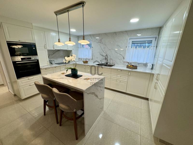 Százhalombatta legszebb részén, az Óvárosban helyezkedik el ez a kiváló adottságokkal rendelkező családi ház. 1994-ben épült és 2024-25-ben lett teljeskörűen, különleges módon és minőségben felújítva. Szeretettel, körültekintően, magas igények szerint lett kialakítva.- 1/1 tulajdonban van- beépített bútorok és garancia alatt álló BOSCH gépek az árban- a többi bútor és gép megbeszélés tárgyát képezi- délkeleti tájolása miatt mindig kellemesen süt be a nap- mozgásérzékelő, riasztó, távfelügyeleti rendszer, 2db 360 fokos kamera mobilapplikációval- műanyag nyílászárók, jó szigetelés és biztonsági bejárati ajtó- a felső emeleti szobából DUNAI PANORÁMA- KERTÉPITÉSZET, -DESIGN, LAKBERENDEZÉS- intimszféra garantáltBuszmegálló kettő is a közelben, közel a vasútállomás és Budapest is fél órán belül elérhető.Ajánlom pároknak, kis- és nagycsaládosoknak.Várom megkeresését!Amennyiben további részletekre kíváncsi:Az első benyomás már a bejáratnál és a gondosan kialakított kertnél magával ragad.Színvilág nem a véletlen műve, tökéletes harmoniában van egymással, akár a feng-shui alapján:A ház, a kerítés, a belső terek színvilága professzionálisan lett tervezve, minden árnyalat tökéletes harmóniában van egymással, a belső berendezést pedig lakberendező készítette.Kert - design garden: 10-12db gyümölcsfacsemete lett elültetve (1 édes alma, 1 savanyú alma, 1 szilva, 1 cseresznye, 1 meggy, 1 körte, 1 barack, 1 mandula, 1 gránátalma, 1 füge stb.). Úgy lettek elültetve, hogy egymás után virágozzanak, így a termésük is folyamatosan, tavasztól késő őszig érkezik (májustól október végéig). A kert teljes mértékben kertész által tervezett és kivitelezett, magas dizájnban kialakított, igazi oázis. Kiemelkedően figyeltek az intimszférára: kb. 20 örökzöld, leyland ciprusok garantálják a privát hangulatot. A kerítésnél babérmeggy sor húzódik, rózsák futnak fel az apácarácsokon, körbe levendula fut és kecskerágók is vannak közöttük. Télen is az örökzöld növények miatt garantált az intimszféra. A gyep a legjobb minőségű sportfűből készült, tartós és strapabíró, a talaj termőréteggel lett feltöltve, hogy minden növény egészségesen fejlődhessen. A kert egyszerre esztétikus, praktikus és teljesen zárt, így maximális intimitást biztosít.Úgy lett kialakítva a kert, hogy a fent említett dísznövények és gyümölcsfák körbeveszik a kerítést, így 200m2 füvesített rész van a kert közepén, így medence, sütögető vagy más szabadidős lehetőségek is könnyen elférnek. Az egyik oldalon vadonatúj drótkerítés is van. Díszkút az udvarban, kiépített öntözőrendszerrel.Közművek és rezsi:Két vízóra van, az egyik a kerti locsoláshoz a pincében, a másik a normál fogyasztásra az aknában. A gázóra kint van a ház elején, a csatornánál átemelő segíti a lejtés miatt a vízemelést. A villanyvezetékek vadonatújak. Az álmennyezet a dizájnnak megfelelően spotlámpákkal van ellátva. Kiváló szigetelés, a rezsi szinte elhanyagolható! A cirkó gázkazán vadonatúj (BOSCH), engedélyezési dokumentummal együtt. Lent padlófűtés van, fent radiátorok. Emeletenként 1-1 inverteres klíma (MIDEA, prémiummárka), egy másik szobában ki van építve, ha igénye lenne rá.Bejárat:Az elektromos autóbejáró és a modern, fémből készült kerítés fa design elemekkel már a megérkezés pillanatában minőséget és letisztult eleganciát sugall. A kinti világítás kapcsolóval működik. Díszkővel van körberakva a ház, ami alatt geotextilia van és szegővel van lezárva. A csőrendszer elnyeli az esővizet. Pince:Ritkaság, hogy egy ház alatt pince található: itt egy tágas 25,25m2-es pince van, 5cm aljzatbetonnal és szellőzőrendszerrel a nedvesség ellen.Környék:Az ingatlan Százhalombatta legértékesebb részén, az exkluzív Óvárosban található, egy csendes zsákutcában, ahol nincs átjáróforgalom. A környék a város legnyugodtabb, legbiztonságosabb övezete, valódi békét és kivételes életminőséget kínál.Városunk:Százhalombatta Budapest közvetlen vonzáskörzetének egyik legkulturáltabb és legdinamikusabban fejlődő kisvárosa. A Duna-part nyugalma, a gondosan karbantartott zöldterületek és a modern városi infrastruktúra együtt teremtenek kimagasló életminőséget.A város kiemelkedően jó közlekedési kapcsolatokkal rendelkezik, így a főváros mindössze percekre van, miközben a környezet megőrzi a prémium, csendes, kertvárosi hangulatot.Minőségi oktatási intézmények, sport- és wellnesslehetőségek, valamint gazdag kulturális programkínálat teszik vonzóvá a tudatos ingatlanvásárlók és befektetők számára.Százhalombatta mára egy olyan város, ahol a kényelem, biztonság és értékállóság találkozik - tökéletes választás igényes otthonkeresők számára.Jelentkezzen! :)