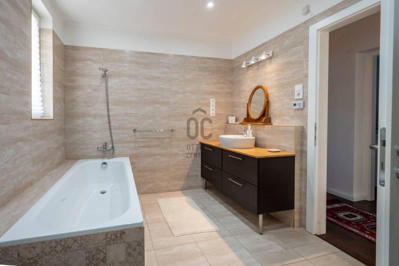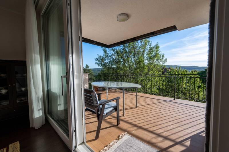 A Budai-hegység ölelésében, Nagykovácsi egyik legexkluzívabb, természetközeli részén, a Kültelek utcában kínálunk megvételre egy ritkaságszámba menő, 2018-ban épült, háromszintes, 8 szobás, panorámás családi rezidenciát. Az ingatlan egy intim, 1007 m²-es délnyugati fekvésű telken helyezkedik el, ahonnan lélegzetelállító kilátás nyílik a városi sziluettre és a környező zöld dombokra. A ház két utcáról is megközelíthető – az egyik oldalon aszfaltozott út, a másikon csupán 50 méteres, gondozott murvás szakasz vezet fel.A rezidencia tégla falazattal, gondosan megválogatott, időtálló építőanyagokkal és modern műszaki tartalommal készült. A padló- és radiátoros fűtésrendszerrel kombinált gázcirkó, valamint nagycsaládos igényeket is kiszolgáló vízmelegítővel. Az ingatlan kifogástalan állapotú, esztétikailag és műszakilag egyaránt prémium színvonalat képvisel.Letisztult elegancia három szinten – gondosan megtervezett élettérAlagsor – wellness és privát rekreációraA ház alsó szintje a kikapcsolódásnak és a praktikumoknak szentelt:- Prémium szauna külön zuhanyzóval- Pihenésre alkalmas lakótér (25 m²), akár vendégszobaként, akár edzőhelyként- Tágas raktár (20 m²), igényes gépészeti helyiség- Közvetlen kapcsolat a 27 m²-es terasszal, ahonnan a kert nyugalma tárul fel.- Ez a szint tökéletesen működik privát wellnessrészlegként vagy önálló vendéglakrészként.Földszint – a rezidencia reprezentatív központja.A földszinten a nagyvonalú terek, a fény és a panoráma dominálnak:- Fényárban úszó nappali közvetlen teraszkijárattal- Tágas étkező és modern, praktikusan kialakított konyha kamrával- Különálló vendégszoba és vendégmosdó- Privát hálószoba saját gardróbbal és fürdőszobával- Külön dolgozószoba, amely otthoni irodának vagy könyvtárnak is ideális- A ház egyik legszebb eleme a 38 m²-es panorámás terasz, amely a nappali és az étkező együttes meghosszabbítása – tökéletes helyszín reggeli kávéhoz vagy esti borozáshoz- A földszint eleganciája és funkcionalitása egyaránt a modern családi életet szolgálja.Emelet – privát lakosztály a nyugalom jegyébenA felső szint a ház privát, pihenésre kialakított szférája:- Két impozáns méretű hálószoba- Stílusos, külön fürdőszoba- 12 m²-es erkély, amely a hálókból közvetlenül elérhető és páratlan panorámát biztosít- Ez a szint külön lakrésznek is tökéletes, ideális szülői lakosztálynak vagy idősebb gyermekek számára.Ahol a természet és a luxus harmonizál:1000 m²-es, intim, délnyugati fekvésű kert állandó napsütést, teljes privát szférát és kivételes panorámát kínál. A telken két nyitott gépkocsi-beálló biztosítja a kényelmes parkolást.Nagykovácsi a főváros egyik legértékesebb agglomerációs települése:- magas életminőséggel, kiváló levegővel, világszínvonalú oktatási intézményekkel (köztük az Amerikai Nemzetközi Iskolával), közvetlenül a Budai Tájvédelmi Körzet szomszédságában.- Nagykovácsi ötvözi a természet közelségét a modern, családbarát infrastruktúrával.Ez az ingatlan nem csupán egy ház – inkább egy életérzés!Foglaljon időpontot telefonon a megtekintésre – engedje, hogy ez a különleges rezidencia személyesen is elvarázsolja.Hitelezési Szakértőnk egyetlen lépésben bemutatja Önnek az összes pénzintézet ajánlatát - így elkerülheti a hosszadalmas és felesleges banki látogatásokat – gyorsan, hatékonyan és a legjobb döntést biztosítva Önnek.Ez az ingatlan a \"Felező csomag\" megbízási portfólióhoz tartozik. Részletek az Otthon Centrum weboldalán.