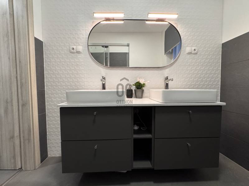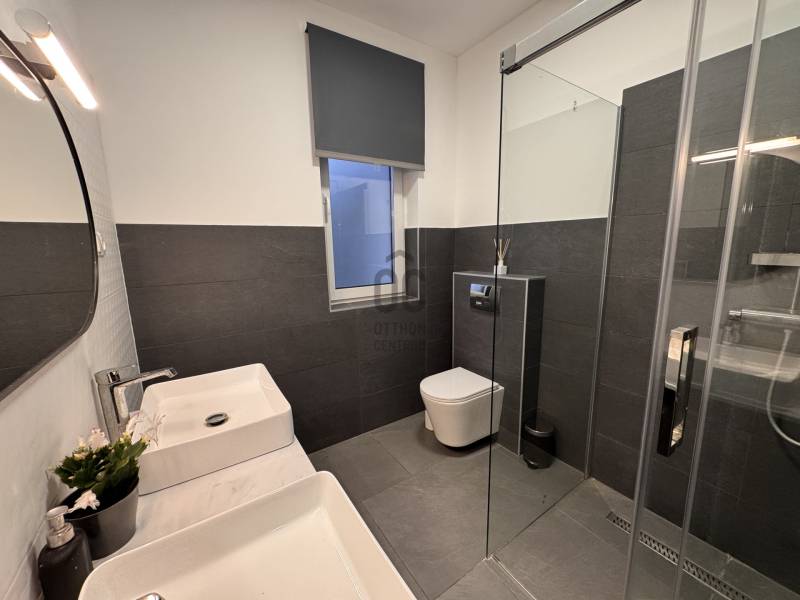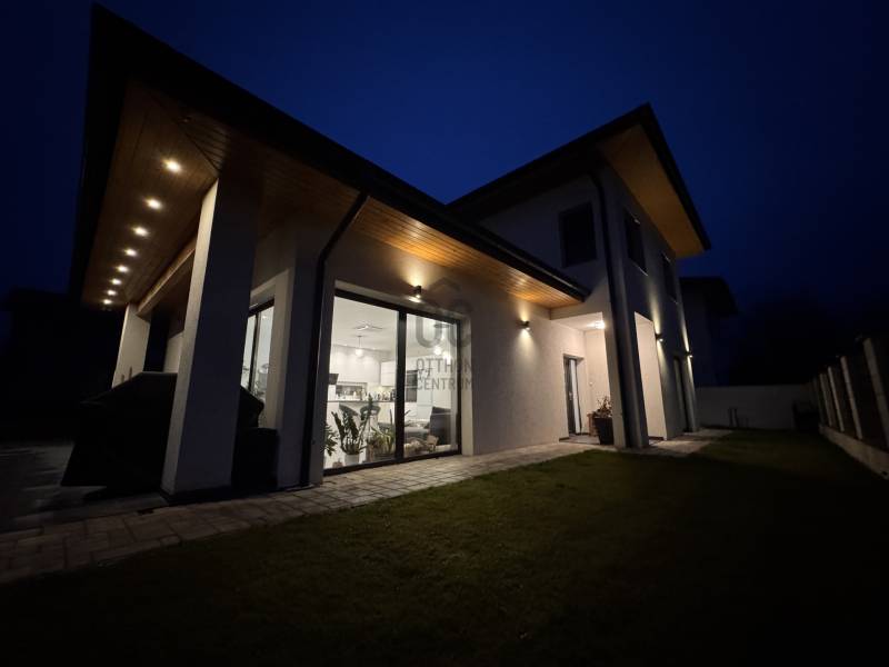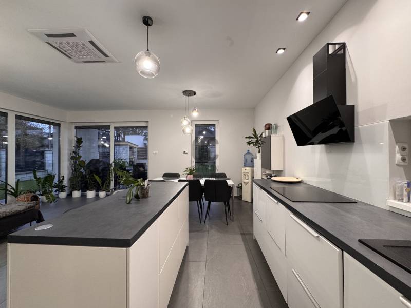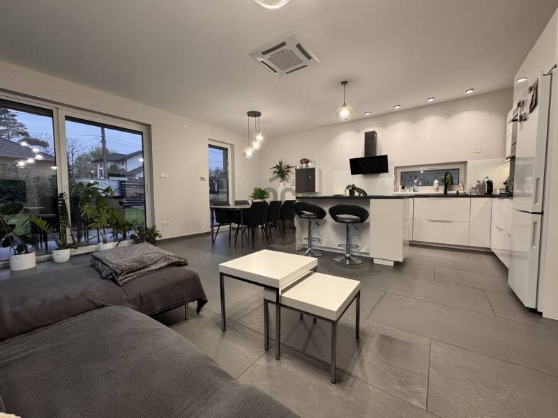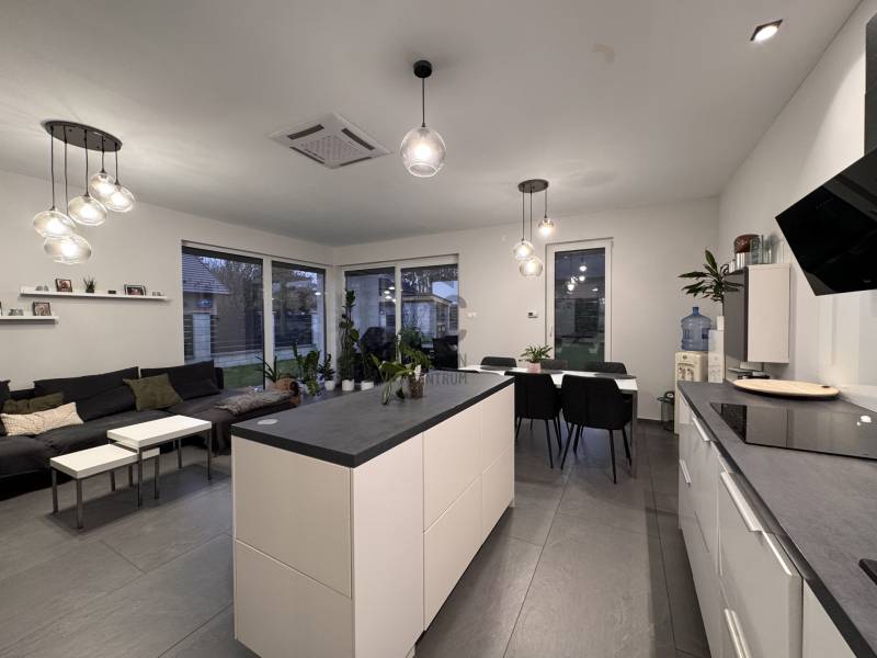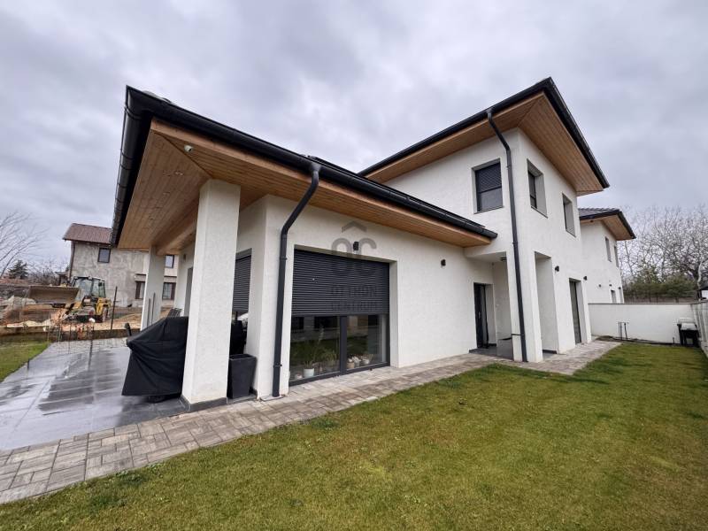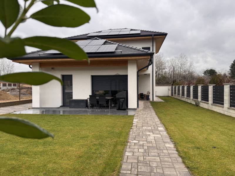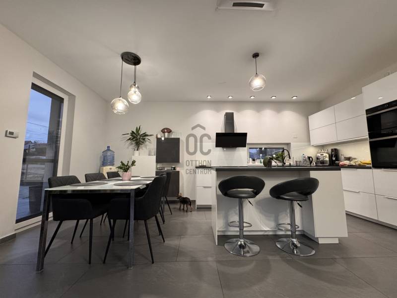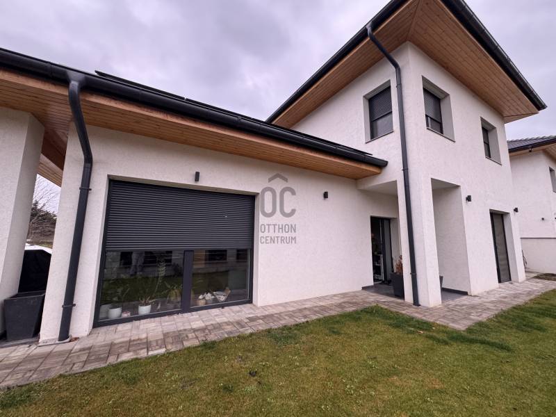 Göd az északi agglomeráció ékköve, a Dunakanyar Kapuja, egy tüneményes kertváros a zsibongó Duna partján Budapesttől egy karnyújtásnyira, - így annak közelében, de a zajától már távol. Híres jó nevű iskoláiról, virágos köztereiről, városi rendezvényeiről, gyönyörű partszakaszáról és remek infrastruktúrájáról, így méltán vált a kiköltöző Családok dobogós választásává ez elmúlt években. Unikális természeti adottságai közé tartozik a Feneketlen tó, Ilka patak, Topolyás dűlő, az Erzsébetliget valamint a páratlan Homoksziget.Itt, a város fejlődő, leginkább zöldövezeti részén GÖD-NEVELEKEN került eladósorba egy kimondottan fiatal, MAKULÁTLAN ÁLLAPOTÚ IKERHÁZ. Csendes utcában, nívós szomszédság mellett, erdőközei területen kapott helyet.A ház, bár jogilag ikerház, de gyakorlatban teljesen különálló házként működik, hiszen elszeparált terekkel rendelkezik, MINDEN KÜLÖN VAN és NINCS ÖSSZEÉRŐ FALFELÜLET a lakóterekben.3 éves az épület, ehhez mérten maximálisan korszerű, NAPELEMRENDSZERREL (10kW), HŐSZIVATTYÚS (12kW) padlófűtéssel, központi klímarendszer, korszerűen szigetelt (20cm dryvit) falakkal és födémmel, kiegészítő hőszabályozással (elektromos kazán, kandallókiépítési lehetőséggel) MINIMÁLIS FENNTARTÁSI KÖLTSÉGGEL:----------------------------------------------- ÖSSZREZSI 20e Ft/hó !!! -----------------------------------------------------------------Elrendezése abszolút átgondolt és praktikus:Földszinten: kényelmes előszoba, egy hálószoba, épített zuhannyal felszerelt fürdőszoba+WC, háztartásihelyiség+gépház, GARÁZS, amerikai konyhás nappali+kamra, nagy fedett terasz alkotják a helyiséglistát. Rengeteg az üvegfelület, így ennek és a kiváló tájolásnak köszönhetően napfényes, szellős és tágas terek születtek. A konyha magafényű frontos minimál stílusú, teljes gépesítéssel és bárpultos konyhaszigettel rendelkezik, nagy méretű olasz kerámia burkolólapok és magas minőségű beltéri ajtók valamint design lámpatestek emelik a hangulatot. A háztartási helyiség jól pakolható, rendkívül praktikus mosókonyhaként is funkcionálhat, a kamra polcrendszerrel felszerelt, a garázsban pedig valóban hatalmas hely jut az autó tárolásán felül a családi bicikliknek, SUP flottának, grillszettnek.Emeleti szinten: /AZ EMELET TELJES ÉRTÉKŰ, NINCS TETŐSÍK MIATTI TÉRVESZTESÉG!/ 2 jó méretű több ablakos hálószoba, egy jelenleg gardróbként bútorozott félszoba és tágas, kádas fürdőszoba+WC került kialakításra. Világos, barátságos tereiben ideális méretű szobákat kapunk, a lépcsőtér is kellemes, ablakos nem egy sötét lyuk az épületen belül. PADLÁSTÉRBEN- rengeteg további hely jut tárolásra, járható szigetelt födémfelület van!A telek pontosan elég méretű, közel 400m2-én díszsövények és gondosan parkosított gyep fogadja az ideérkezőt. Az elektromos kapukon át a garázson kívül zárt udvarban viacolor további 4 autó parkoltatása megoldott!Jöjjön el, tekintse meg, ha nagyobbra váltana, ha olyan Otthont keres ami korszerű, munkamentes és modern stílusvilágú, ha fontos a környezet és az erdő közelsége, ha nem köt kompromisszumot és fenntarthatóan szeretné családjának megadni azt a ház-méretet amit a kényelmes hétköznapok megkövetelnek!-alaprajz feltöltése folyamatban, Kérje üzenetben!-