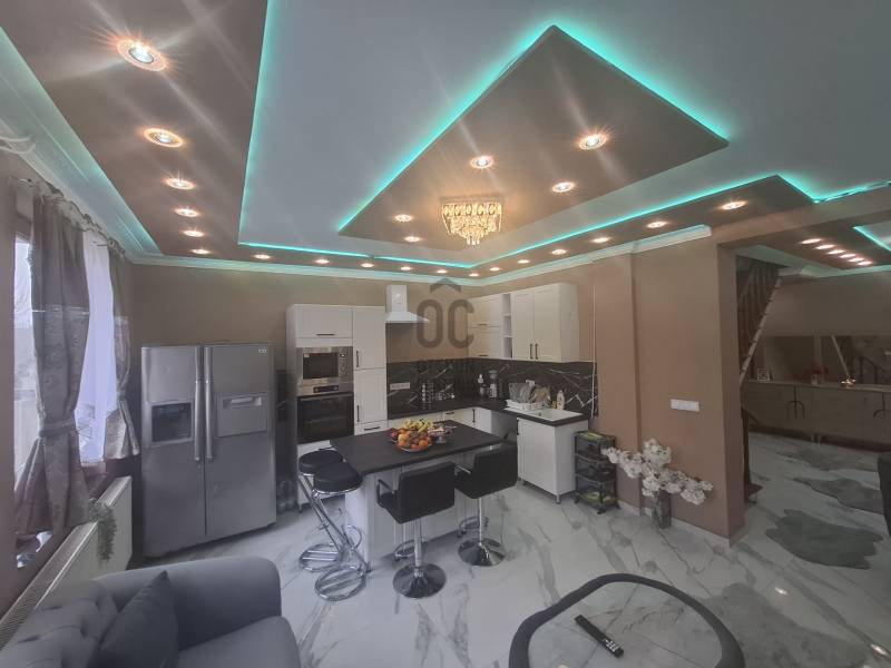 Eladó Monor központjához közel eső részén egy kiváló állapotú, 123,7 m2-es családi ház. Az ingatlan 1997-ben épült, beton alapra, tégla falazattal, amely tartósságot és stabilitást biztosít.Képzeld el, hogy egy igazán különleges otthon vár rád Monoron, Pest vármegyében, ahol a család minden tagja megtalálja a számításait! Ez a 123,7 nm-es, frissen felújított ház tökéletes választás családosok számára, akik a kényelmet és a modern életstílust keresik. Az 502 nm-es telek lehetőséget ad arra, hogy gyönyörű kertet alakíts ki, ahol a gyerekek biztonságosan játszhatnak, miközben te pihenhetsz a 15 nm-es teraszon, vagy élvezheted a szép kilátást az erkélyről, amely 5,52 nm-es. A házban négy tágas szoba található, amelyek világosak és barátságosak. A két fürdőszoba garantálja, hogy soha nem kell várakoznod a reggeli készülődés során. Az amerikai konyhás, konyhaszigetes elrendezés nemcsak praktikus, hanem a családi összejövetelek középpontja is lehet. A modern LED hangulatvilágítás pedig feldobja az estéket, és hangulatos légkört teremt. A környék ellátottsága kiváló, a közlekedési csomópont közelében helyezkedik el, így a kitűnő közlekedésnek köszönhetően könnyedén elérheted a város főbb pontjait. A helyi boltok, iskolák és óvodák mind pár perces távolságra találhatók, így minden szükséges szolgáltatás kéznél van. Ez a tehermentes ingatlan nemcsak a kényelmet, hanem a modern életstílust is képviseli. A vegyes fűtés és a klíma biztosítja, hogy minden évszakban kellemes legyen a hőmérséklet a lakásban. A ház állapota jó, így azonnal birtokba veheted, és élvezheted az új otthonod adta lehetőségeket. Az Ingatlanon most teljeskörű külső-belső felújítás történt:- új esztrich beton, teljes vízszigeteléssel- új villanyhálózat- új vízhálózat- új csatornarendszer- új kazán, csövezés, komplett rendszer- új burkolatok és vakolás- alsó szinten ablak- és ajtócsere- új kerítés- 15 m2-es fedett terasz építése- fedett kocsibeálló- alsó szinten nappaliban és felső két szobában klímaA vízbekötés folyamatban van, várhatóan a következő év elején készül el.A ház teljes bútorzata – amely új állapotú – külön megegyezés tárgyát képezi.Ne habozz, ha kérdéseid lennének, vagy szeretnéd megtekinteni ezt a gyönyörű ingatlant, bátran keress fel a megadott elérhetőségeken! Az új otthonod csak egy lépésre van tőled, és biztos lehetsz benne, hogy minden kérdésedre szívesen válaszolok. Az ingatlan piaca gyorsan mozog, és ez a lehetőség nem tart örökké!