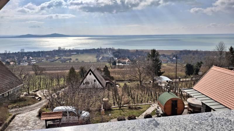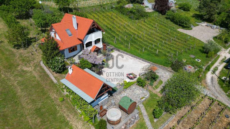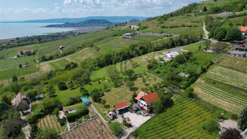 LENYŰGÖZŐ PANORÁMA A BALATON, FONYÓD ÉS A TANÚHEGYEK LÁTKÉPÉVELA Balaton északi partjának legjellegzetesebb, egyben legmagasabb hegye a Badacsony.Neve összeforrt a borkultúrával, de a kirándulók és a vízi sportok kedvelői számára is ideális.A szőlődűlők között fekvő ingatlan - együttes PÁRATLAN PANORÁMÁT NYÚJT A BALATONRA ÉS A KÖRNYEZŐ TANÚHEGYEKRE!KIEMELT MEGBÍZÁS AZ OTTHON CENTRUM KÍNÁLATÁBAN!A 2352 m2-es telken fekvő 150 m2-es FŐÉPÜLET télen- nyáron jól megközelíthető, így állandó otthonnak is alkalmasFőbb jellemzői:-2007- ben épült, tégla és kő felhasználásával - fa nyílászárók, mozgatható zsalukkal - fűtése villanykazán radiátorokkal, melyek a vízteres kandallóra is rá vannak kötve - vezetékes víz áll rendelkezésre,mely a badacsonyi hegyen ritka, valamint bővízű ásott kúttal és forrásvízzel is rendelkezik - a villany 2 mérőóra, mindegyikhez 3*25 A tartozik - a ház mindegyik szintjén klíma biztosítja nyári hőségben a kellemes hőmérsékletet - minden helyiségben működő riasztórendszer távfelügyelettelElosztását tekintve az alsó szinten konyha- étkező, teraszkapcsolatos nappali, mellékhelyiség, kint és bent is tároló került kialakításra.A felső szinten a napfényes nappalihoz szintén kapcsolódik egy terasz+ külön hálószoba és egy zuhanyzós fürdőszoba.Az épület alatt fogadótérrel rendelkező pince biztosít helyet nagyobb baráti összejövetelekhez.A TELEK: Szép időben a búbos kemencével,füstölővel, csikó tűzhellyel és grillel felszerelt szaletli tökéletes hely a kinti főzéshez, családi ebédhez vagy vacsorához. Az északi szél ellen üvegfüggöny nyújt védelmet. A szaletli alatt a kerti eszközök tárolására kialakított helyiség épült. Előtte pedig a relaxálást biztosító dézsafürdő és szauna kapott helyet. A ház előtti telekrész 3- 4 autó számára alkalmas parkolásra. A telek enyhén lejtős, alkalmas akár saját zöldségek, gyümölcsök és fűszernövények termesztésére.A VENDÉGHÁZ: - a jelenleg használt 22 nm-es lakrészben a konyha-étkező-háló mellett egy fürdőszoba került kialakításra - a ház hátsó részében található 14 nm-es borfeldolgozó átépítésével a lakótér növelhető - az épület oldalánál kialakított téli kert mozgatható elemekkel igény szerint nyitható-zárható - a lakótér fűtését az elektromos panelek mellett fatüzelésű kandalló is biztosítja -a felszerelt hűtő-fűtő klíma télen-nyáron gondoskodik a megfelelő hőmérsékletről - víz és villany bevezetve - riasztó rendszer bekötveA KERT:- a 839 nm-es területen lépcsőzetes kialakítású, bazaltkő támfallal tagolt fűszerkert található - a 25 nm-es fém üvegházban szinte minden megtermelhető - a parkolást fedett autóbeálló biztosítja, melyet elektromos kapu nyit - az épület előtti bazaltkővel kirakott terasz jó időben tökéletes helyszín a pihenésre, és a szabadtéri étkezésre lenyűgöző panorámával a Balatonra és a környező településekreAz ingatlan kifüggesztés köteles.Nagyobb családoknak tökéletes választás lehet ez a két külön épülettel rendelkező nyaraló, de akár kiadásra is elhelyezkedésének köszönhetően.Ha kérdése merült fel vagy szeretne időpontot egyeztetni, várom megtisztelő hívását a megadott elérhetőségeken!Használja ki ezt a ritka lehetőséget és nézzük meg együtt ezt a varázslatos ingatlant!