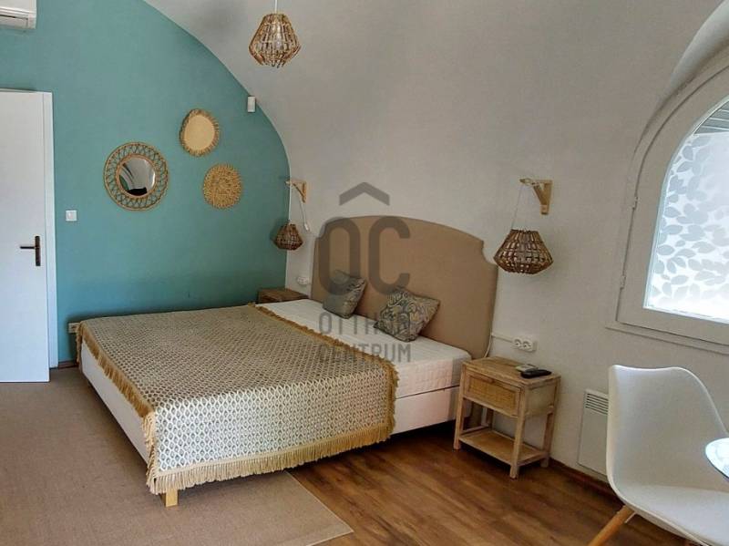 A Kisfaludy útról nyíló zsákutcában jó megközelíthetőséggel rendelkező felújított apartmant közel 50 nm terasszal ajánljuk figyelmébe. Az ingatlan főbb jellemzői: - A ház jelenleg használt 22 nm-es lakrészén a konyha-étkező-háló mellett egy fürdőszoba került kialakításra. - A ház hátsó részében található 14 nm-es borfeldolgozó átépítésével a lakótér növelhető. - Az épület oldalánál kialakított téli kert mozgatható elemekkel igény szerint nyitható-zárható. - A lakótér fűtését az elektromos panelek mellett fatüzelésű kandalló is biztosítja. - A felszerelt hűtő-fűtő klíma télen-nyáron gondoskodik a megfelelő hőmérsékletről. - Vezetékes víz – ami a hegyen kincs, és nem mindenhol elérhető rendelkezésre áll.- A 839 nm-es területen lépcsőzetes kialakítású, bazaltkő támfallal tagolt fűszerkert található- A 25 nm-es fém üvegházban szinte minden megtermelhető- Az autó tárolásra és beállásra fedett autótároló készült, melyet elektromos kapu nyit.- Az épület riasztó rendszerrel rendelkezik- Az épület előtti bazaltkővel kirakott terasz jó időben tökéletes helyszín a pihenésre, és a szabadtéri étkezésre lenyűgöző panorámával a Balatonra és a környező településekre.Ha kisméretű, könnyen karbantartható nyaralót keres, vagy szálláskiadásban gondolkodik, úgy tökéletes választás a meghirdetett ingatlan!Amennyiben felkeltettem érdeklődését, úgy várom hívását!