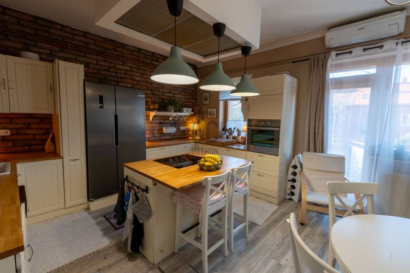 Eladásra kínálunk Székesfehérváron, a Prohászka Ottokár úton egy 75 nm-es (bruttó 90nm), négy szobás, amerikai konyhás, DNY-i tájolású, felújított, tégla építésű lakást.A lakás, három emeletes társasház második emeletén található.A szobák elrendezése a mellékelt alaprajzon látható, nappali + étkező + konyha + 3 szoba + fürdőszoba lett kialakítva.Az ingatlan két erkéllyel rendelkezik.A lakás pár éve teljes körű felújításon esett át, víz és villanyvezetékek cseréje megtörtént, gépesített konyhabútor került beszerelésre, új nyílászárókat, burkolatokat kapott az ingatlan.A fűtést és melegvizet kondenzációs kazán biztosítja, radiátor hőleadásával.A nyári meleg napokban a hűtésről, inverteres klíma gondoskodik.A lakás kiváló közlekedési és szolgáltatási környezetben található. Közintézmények, iskola, óvoda, üzletek pár perc sétával elérhetők.Vasútállomás, városközpont néhány perc sétatávolsággal elérhető. Tömegközlekedéssel is rendkívül könnyen és gyorsan megközelíthető a város bármely pontja.Az ingatlan per-, teher-, igénymentes, 1/1 es tulajdon. A közös költség 17.000- Ft.Hitelre van szüksége? Az Otthon Centrumnál bankfüggetlen tanácsadó kollégánk, díjmentes bank semleges hitelügyintézéssel áll rendelkezésére, segítségére lesz az önnek legmegfelelőbb konstrukció kiválasztásában.Támogatások:- CSOK+- babaváró- 3% Otthon start hitel!!Kérje személyre szabott ajánlatunkat!További információért és megtekintési időpontért hívjon bizalommal a hét bármely napján!