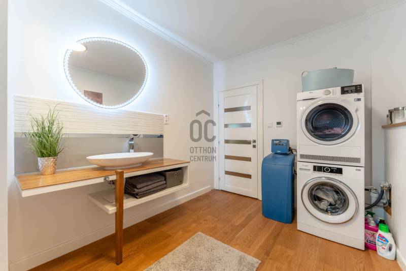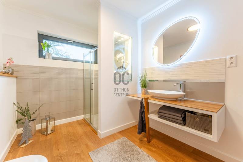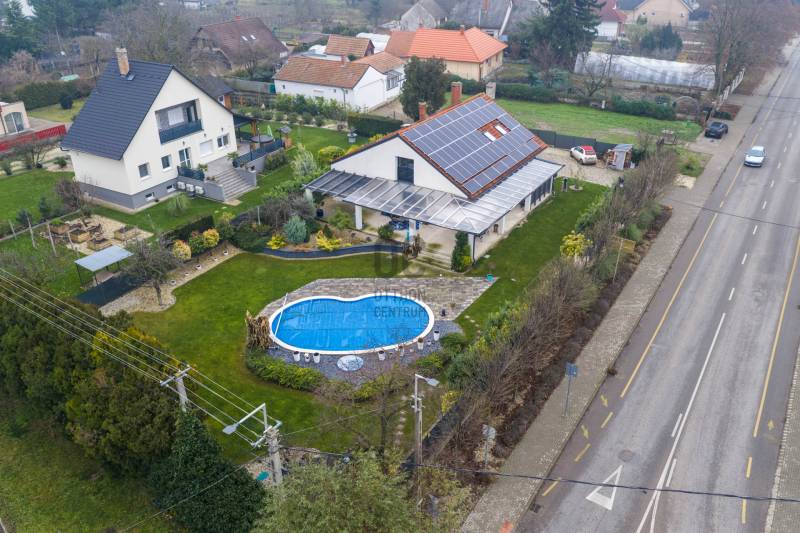 Eladásra kínálunk Székesfehérváron, Öreghegy könnyen megközelíthető részén, egy 260nm-es (bruttó 312nm) két szintes, nappali + öt szobás, három fürdőszobás, dupla garázzsal (36nm) rendelkező, exkluzív családi házat.A ház 1311nm telekre épült, egy 50nm-es boros pince is található a ház alatt.Az ingatlan 2005-ben épült, 2020-ban teljeskörű felújításon esett át, mind műszaki, mind esztétikai szempontból.A korszerű napelemes technikával felszerelt ház (66db 20 kW-os napelem), a magasabb hatékonyságra fókuszál.A fűtésről padlófűtés, a melegvíz ellátásról, három Ariston intelligens bojler gondoskodik.Az ingatlan paraméterei:- 3 x 63 A + ipari áram- kamerarendszer- BWT intelligens vízlágyító készülék- öntözőrendszer, tíz körös, programozható, 480 méter csepegtető rendszerrel- fúrt kút- kerti tároló- 6 x 10 méteres medence, sóbontásos, automata porszívóval felszerelt, fóliával fedett- elektromos garázskapu, bejárati kapu- grandiózus terasz- három rétegű alumínium nyílászárókElhelyezkedése családi házas övezet, főúthoz, autópályához, bevásárlási lehetőséghez közel.A Spar és Lidl egy ugrásra, posta, orvosi rendelő 8 -10 perc sétával elérhető.Tömegközlekedéssel is könnyedén elérhető a ház, a 23,24,25,31,-es buszokkal. Egyedi lehetőség, hívjon bizalommal, amennyiben hirdetésünk elnyerte tetszését, várom megtisztelő érdeklődését!Az Otthon Centrumnál bankfüggetlen tanácsadó kollégánk, díjmentes bank semleges hitelügyintézéssel áll rendelkezésére, segítségére lesz az önnek legmegfelelőbb konstrukció kiválasztásában.