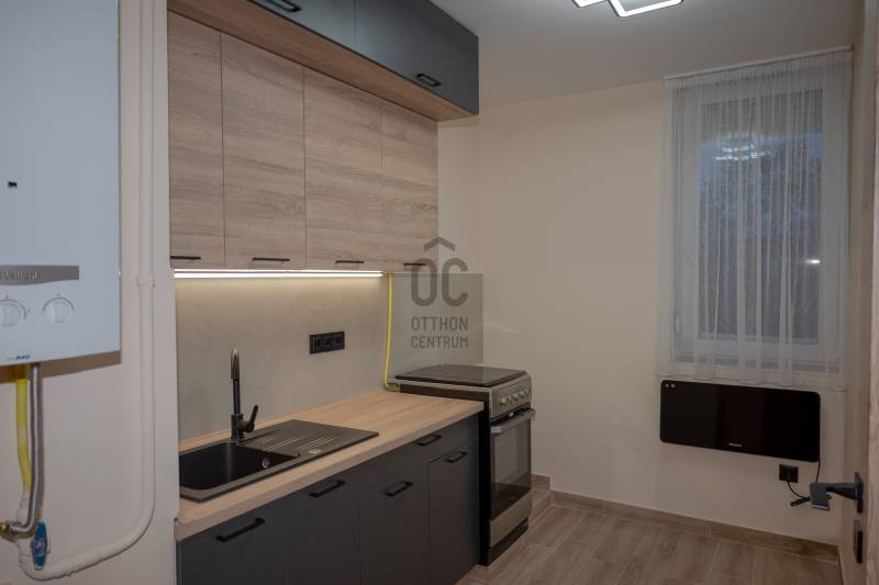 Eladó egy 49 nm-es, tégla építésű társasház 4. emeletén található, teljes körűen felújított lakás, amely tökéletes választás fiataloknak, pároknak vagy első saját otthonukat keresőknek.A lakásban minden megújult: megtörtént a villany- és vízvezetékek cseréje, új hideg- és melegburkolatok kerültek beépítésre, valamint a külső és belső nyílászárók is újak. A modern, fiatalos kialakításnak köszönhetően nincs szükség további felújításra – az ingatlan azonnal költözhető.A fűtés több megoldással is biztosított: gázkonvektor, elektromos fűtőpanel, valamint klímaberendezés, amely hűtésre és fűtésre is alkalmas. A fenntartási költségek kedvezőek, a közös költség mindössze 8.000 Ft havonta.A környék kifejezetten élhető: a közelben üzletek, szolgáltatások és közlekedési lehetőségek találhatók, minden elérhető, amire a mindennapokban szükség van. A negyedik emeleti elhelyezkedés világos, nyugodt lakókörnyezetet biztosít.Ez a lakás ideális választás azok számára, akik egy modern, lendületes városi otthont keresnek, ahová tényleg csak beköltözni kell.A hirdetésben szereplő információk a megbízótól kapott adatok alapján készültek, pontosságukért felelősséget nem vállalunk! AZ ALAPRAJZ CSAK TÁJÉKOZTATÓ JELLEGŰ!Az energetikai tanúsítvány készítése folyamatban van, amint rendelkezésre áll, úgy azzal a hirdetés frissítésre kerül.Amennyiben vásárláshoz hitelre is szüksége van, független hitel tanácsadónk ingyenesen tud Önnek segítséget nyújtani a legjobb konstrukciók kiválasztásában és a folyamat lebonyolításában. Irodánk kereső ügyfeleinknek teljes körű szolgáltatást nyújt, szakszerű tanácsadással, energetikai tanúsítvány elkészítésével, hitelügyintézéssel és profi ügyvédi segítséggel. Abban az esetben ha az ingatlan felkeltette érdeklődését keressen bizalommal!