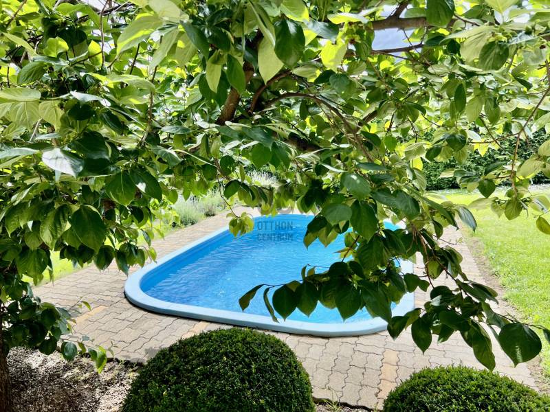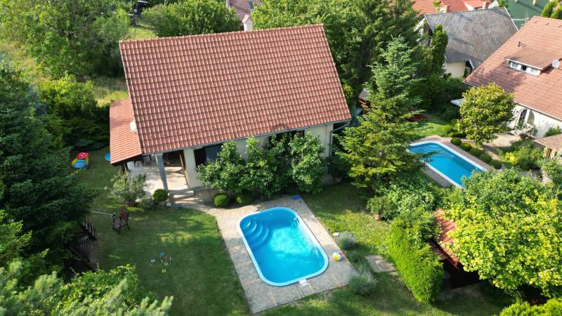 A Balatontól mindössze 1500 méterre, Balatonföldvár nyugodt, ritkán beépített részén kínálunk megvételre egy valóban különleges adottságú, gondosan karbantartott, medencés családi házat. Az ingatlan jelenleg is jól működő vendégházként üzemel, ugyanakkor tökéletes választás lehet családi nyaralónak vagy akár állandó otthonnak is.Az ingatlan főbb paraméterei:Telek: 469 m², 23 méter széles utcafronttal, igényesen kialakított, gondozott kerttelFöldszint: 74 m² lakótér + 28 m² fedett terasz3 hálószobafürdőszoba WC-velvilágos, napfényes amerikai konyhás nappaliTetőtér: 64 m² (ca. 80%-os készültségi szint)3 hálószobanappalifürdőszoba, külön WC, közlekedőTájolás: délnyugati – egész nap világos, napfényes terekMűszaki és kényelmi felszereltség:Kerti medence, sütögető és külön szerszámtárolóKétrétegű fa nyílászárók, szúnyoghálóval felszerelveFűtés gázcirkó kazánnalIvóvíz közműről, valamint saját, bevizsgált fúrt kút ivóvíz-minőségű vízzel – ideális locsoláshoz és a medence üzemeltetéséhezElektromos hálózat földkábelen bevezetveMiért jó döntés ez az ingatlan? A ház ideális választás mindazok számára, akik csendes, természetközeli környezetben szeretnének pihenni vagy élni, mégis elérhető távolságban maradnának a Balatontól. A már bejáratott vendégházi működésnek köszönhetően az ingatlan akár azonnali bevételt is biztosíthat új tulajdonosának.A tágas, fedett terasz kiváló helyszíne baráti és családi összejöveteleknek, a gondozott kert és a medence pedig valódi nyaralóhangulatot teremt a mindennapokban.Ne szalassza el a lehetőséget!Tekintse meg személyesen, és tapasztalja meg, milyen érzés hazatérni ebbe a barátságos, sokoldalúan hasznosítható balatoni otthonba.