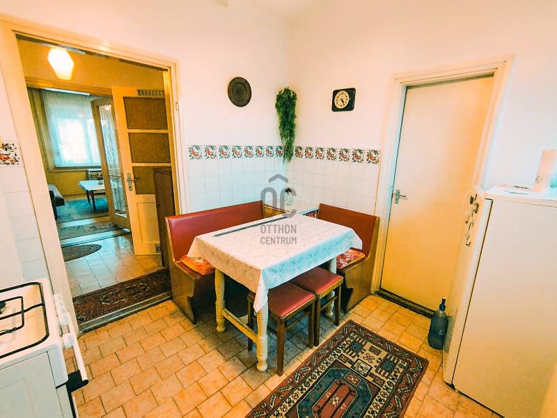 Egy részben felújított, de még ráfordítást igénylő ingatlant kínálok eladásra Nagykőrösön, a kórház közelében.Az utcafronti, kádár kocka stílusban épült házban egy nagy nappali, kettő szoba, konyha, kamra, fürdőszoba, előszoba és közlekedő helyiség került kialakításra.MŰSZAKI JELLEMZŐK- 1975-ben épült- beton alap- tégla falazat- hasznos alapterület: 81 m²- belmagasság: 275 cm- telek mérete: 652 m²- külön nyíló szobák- a szobák laminált parketta borítású- a többi helyiség járó lappal burkolt- külső és belső nyílászárók eredeti fa szerkezetű, normál állapotú- ablakok redőnyel felszereltek- régi villany- meleg vizet gázbojler biztosítja- jó tetőszerkezet- 2,80 m² fedett terasz- egyéb tárolók és ólak- udvaron fúrt kút- tető cseréppel fedettFŰTÉSAz otthon melegét gázfűtés biztosítja, működőképes konvektorok segítségével.Alternatív fűtésként a nagyobb szobában biztosított egy hangulatos cserépkályha is.BIRTOKBA ADÁSAz ingatlan jogilag rendezett, tehermentes, birtokba vétele a teljes vételár kifizetése után azonnal lehetséges!FIGYELEM! A hirdetésben szereplő információk a megbízótól kapott adatok alapján készültek, pontosságukért felelősséget nem vállalunk!Az Energetikai tanúsítvány elkészítése folyamatban van.Felmerülő kérdésével, megtekintés szándékával kapcsolatban keressen a hét bármely napján - akár hétvégén is!Nézzük meg együtt, és segítek a legjobb döntés meghozatalában!Ügyfeleim elégedettsége számomra a legfontosabb, így minden segítséget megadok az értékesítés folyamatában!Amennyiben a vásárláshoz még el kell adnia saját ingatlanát, készséggel állok a rendelkezésére!Az Otthon Centrum teljes kínálatával kapcsolatban forduljon hozzám bizalommal!Irodánkban teljes körű ügyintézéssel, ingyenes és bankfüggetlen hitel közvetítéssel várjuk!#tégla #81m²#kettőszoba #nappali #gázkonvektor #KórházközelébenEz az ingatlan a \"Felező csomag\" megbízási portfólióhoz tartozik. Részletek az Otthon Centrum weboldalán.