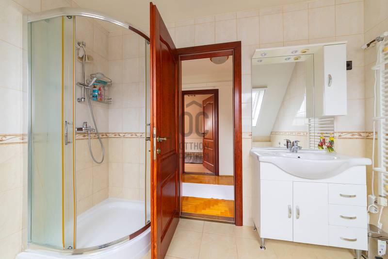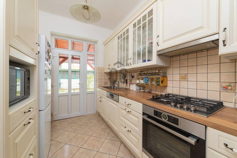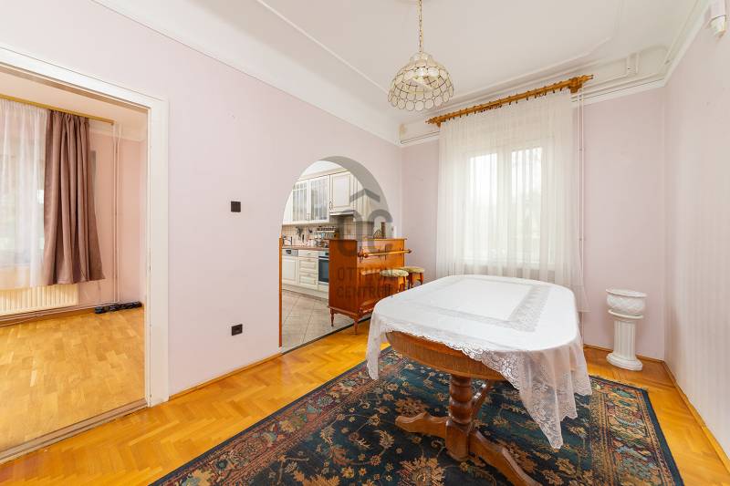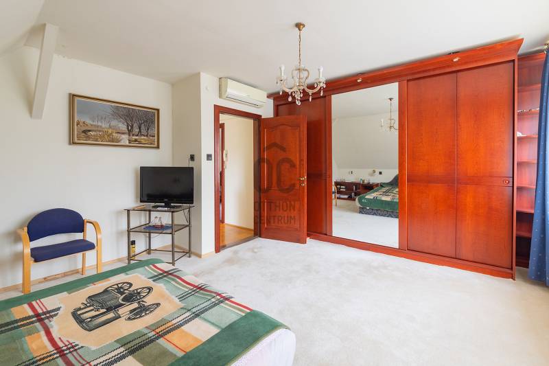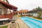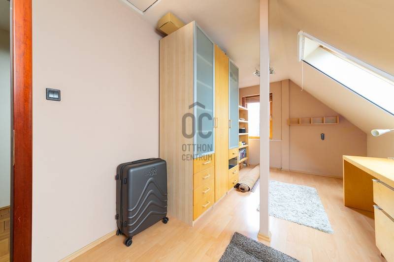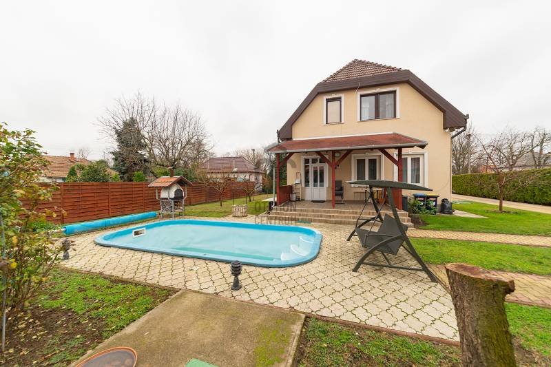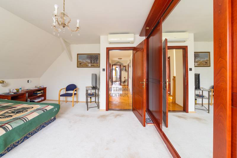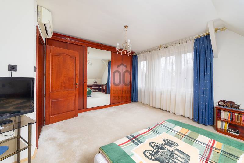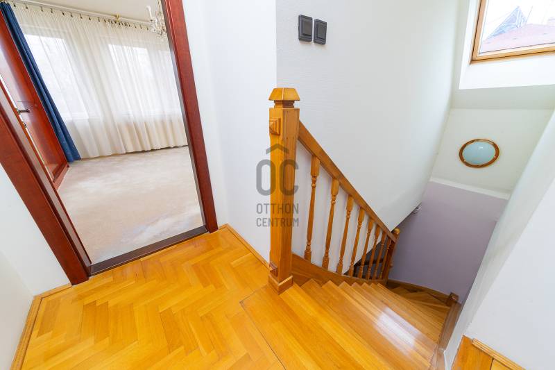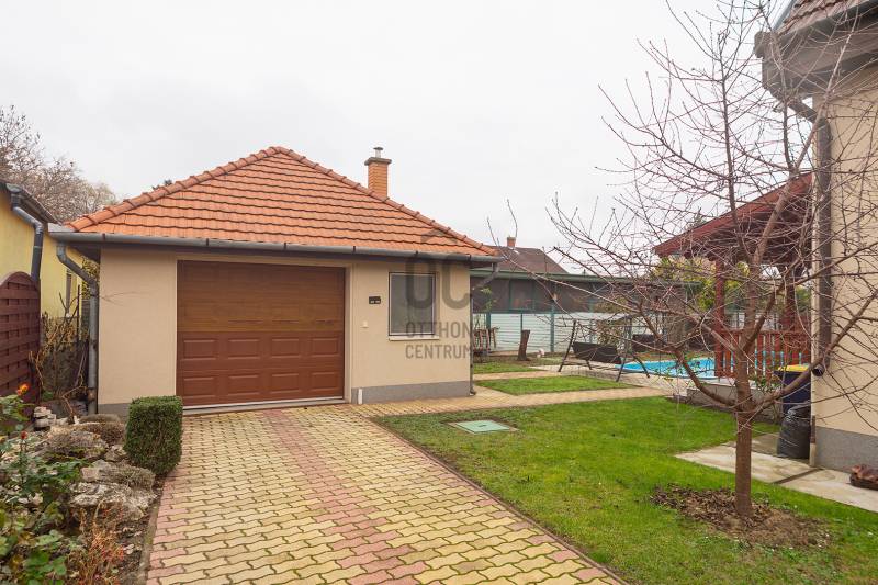 XVII. kerületben Felső-Rákoshegyen, a kerület \"villanegyedében\", ősfás, parkos környezetben kínálunk megvásárlásra egy remek családi házat. A telek mérete 973 nm, gépesített, fűtött medence, nagy garázs, a kert végében műhely, térkövezett autóbeálló, kerti sütögető szolgálják a lakók kényelmét. A ház a 90-es évek végén nyerte el mai formáját, de azóta is több felújítás, korszerűsítés történt. Belső elosztása kiváló, nagyobb család számára is kényelmes otthon lesz. A földszinten tágas, déli tájolású nappali, nagy méretű hálószoba, nagy étkező, konyha teraszkapcsolattal, kamra, zuhanyzós fürdőszoba, előszoba került kialakításra. A konyhában a beépített Nobilia konyhabútor és konyhagépek a vételár részét képezik, a bútorzat pár éve lett cserélve, minőségi darab. Az emeletre kényelmes lépcső vezet, ahol 4 szoba található, továbbá egy kádas fürdőszoba és egy külön mellékhelyiség is helyet kapott. A tetőtér pár éve újra lett szigetelve egy korszerű technológiával. A fűtést és a használati melegvizet egy 2022-ben beszerelt kondenzációs kazán biztosítja, de rendelkezésre áll egy fatüzelésű kazán is, nyáron a kellemes hőmérsékletről 6 db klíma gondoskodik. Az ablakok hőszigetelt üvegezésű fa és műanyag nyílászárók. A tetőt cserép fedi. A kert végében egy kb. 100 nm-es műhely is található, mely könnyedén elbontható, ha nincs szükség rá. A környék kifejezetten szép, csendes, kulturált szomszédokkal. A tömegközlekedés kiváló: buszmegálló 5 perc séta (198-as), vonat állomás 800 méter (11 perc gyalog). Iskola, gimnázium, orvosi rendelő, posta, piac is rövid időn belül elérhető. Az ingatlan üres, tehermentes, gyorsan belül birtokba vehető.#eladóház #kertesház #medence #garázs #azonnalköltözhető #szépház #műhely #csendes #felújított #terasz #kertkapcsolat