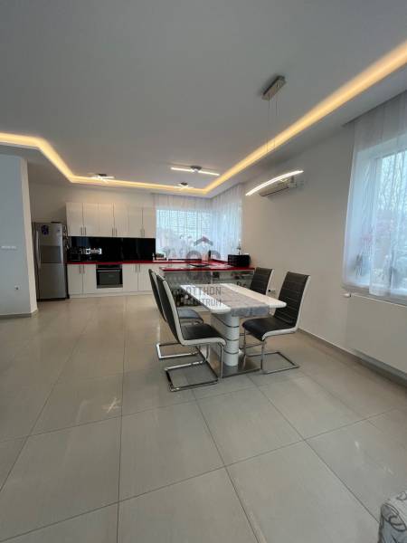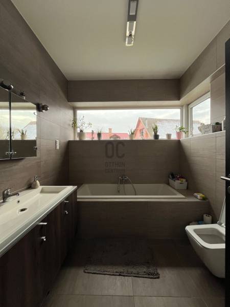 Eladóvá vált ez a műszakilag kiválóan felszerelt, modern, 2021-ben épült ház.A rendkívül jól kigondolt belső terekkel rendelkező 3 hálószobaszoba plusz nappalis ház, csodálatos otthonául szolgálhat mindazoknak, akik nem a belváros forgatagára vágynak. A házat a tágas terek a letisztult stílus és a napfény jellemzik. A gazdaságos hőszivattyús fűtés és a napelemes rendszer miatt, rezsivel szinte nem kell számolni. A ház részét képező fűtött garázsban két személyautó számára van hely, a lakás innen is közvetlenül megközelíthető.Főbb paraméterek:-hőszigeteléssel ellátott téglából épült-hőszivattyús (10kw) fűtés radiátorokkal, fürdőkben padlófűtés -vegyes tüzelésű kazán 800l-es melegvíz tárolóval-napelemes rendszer 5 kw-os napelemmel, 9 kw-os inverterrel és 10kw-os akupakkal (4 kw-tal bővíthető)-3 rétegű nyílászárók, nagy eltolható felületekkel-elektromos redőnyökAz energetikai tanúsítvány készítése folyamatban van, amint rendelkezésre áll, úgy azzal a hirdetés frissítésre kerül.Irodánk teljeskörű szolgáltatást nyújt a szakértői, jogi és pénzügyi háttér biztosításával.Keressen bizalommal!