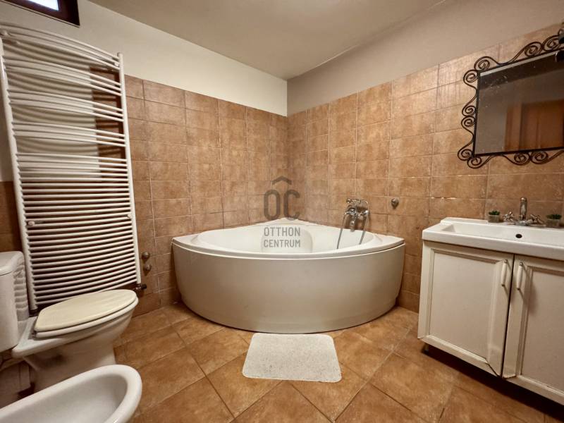 Őrbottyán rohamosan fejlődő, falusias bájú település az északi agglomerációban, Fővárosunktól mindössze 30 km-re a Gödöllői dombság vonulatában.Kiváló közlekedése, jó levegője és infrastruktúrája vonzza a kertbe vágyó családokat, mégsem építették túl, így megmaradt csendes kertvárosnak, ahol érdemes családot alapítani, hiszen a környezet gyönyörű, a hétköznapokból szabadulva a nyugalom szigete várja a hazatérőket. Horgásztavak, zöld lankák, mezőgazdasági területek és erdők ölelik körbe a bűbájos települést, így Mindenkinek tud olyat nyújtani, amire igazán vágyik amikor az otthonára gondol.Itt, az egyik legkedveltebb részen, a panoráma szerelmeseinek utcájában került eladósorba egy UNIKÁLIS CSALÁDI HÁZ.Csendes, átmenőforgalomtól mentes kis utcában, tulipános előkertek és útrahajló gyümölcsfák szomszédságában kapott helyet, Az épület fiatal, 2008-as építésű, Tulajdonosai EGYEDI TERVEK ALAPJÁN SAJÁT RÉSZRE ÉPÍTETTÉK, így magas minőségbeli elvárásaikból, kényelmes és egyedi Otthon született..Az épület nem hivalkodó, csak kerten belülről sejlik fel a robosztus terméskővel fedett homlokzat, és a teraszra érve látszik a Hármashatár-hegyig nyíló zavartalan örökpanoráma.Egyedi formavilága tökéletesen követi a telek adottságait, észrevétlenül simul a zöldbe és önti páratlan köntösbe a funkciót.2 generációs kialakítású, így a szintek külön is használhatóak, de belső lépcsőház is rendelkezésre áll, így ideális nagycsaládos otthon. -1.szint: konyha-étkező, közlekedőfolyosó, zuhanyzó+WC, nagy fürdőszoba káddal, WC+bidével, gépház/háztartási helyiség, 3 hálószoba, nagy fedett terasz-2.szint: tároló, kényelmes előszoba, kádas fürdőszoba +WC, konyha-étkező, tágas nappali, hálószoba, fedett terasz Kényelmes, tágas terek, igényes burkolatok, teljesértékű hálószobák (mindegyik teraszkapcsolatos!) és rendkívül kellemes élettér jellemzi a házat, az ablakok hatalmasak és az egészséges beállt növényzetnek köszönhetően az érzet olyan, mintha a zöld körbeölelné a bent lakót!Műszakilag is korszerű, 38pth homlokzati falak 10cm dryvit palástba bújtatva , cserépfedett tető, szigetelt födém (20cm), egyedileg gyártatott thermoüveges fa nyílászárók, 3éves kondenzációs kazán biztosítja a hőszabályozást, klímaegység 3.6kW, 3fázis, kiépített riasztórendszer.NAPELEM: Éves szaldós elszámolás, 14db panel, 17.25kW tökéletesen ellátja a háztartást, bővíteni is lehet és elektromos autótöltővel kiegészíteni!Fenntartási költsége elenyésző az alapterületre vetítve, a TELJES REZSIKÖLTSÉG TÉLI IDŐSZAKBAN SEM HALADJA MEG A 40e Ft-OT!1326m2-es egészséges méretű kertje kényelmes elosztású, szekciókra osztva használja ki a teleklejtést, így pihenésre és kikapcsolódásra ugyanúgy jut hely, mint konyhakert telepítésre, grillterasz létesítésre és még mindig marad terület kerti játszótérnek, medencének. A ház elé terebélyesedő tekintélyes ősfenyők bástyaként védik a házat és keretezik a panorámát.Jöjjön el, ha valami különlegesre vágyik, ha egyedi Otthont álmodott Családjának egy tüneményes agglomerációs településen a Főváros közelében! Ideális választás nagycsaládosoknak, nagyszülővel vagy felnőtt korú gyermekkel költözőknek és azoknak akiknek fontos a ZÖLD KÖRNYEZET, a jó méretű kert és mindaz a csend és nyugalom mely ezekkel jár!-ALALPRAJZ FELTÖLTÉSE FOLYAMATBAN--