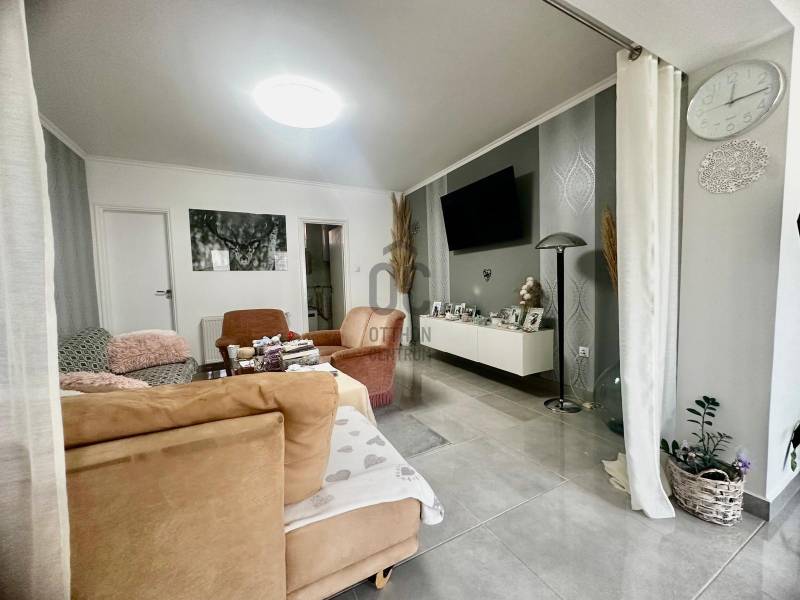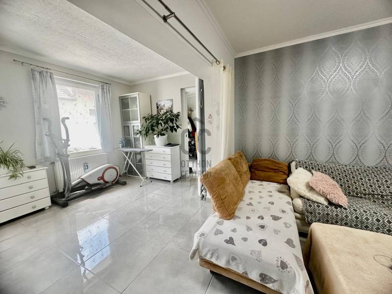 Látrány nyugodt, rendezett részén, a Balatontól néhány perces autóútra eladó egy 120 m²-es iker családi ház, közös 3006 m²-es telken. Ideális választás állandó otthonnak, nyaralónak vagy befektetésnek egyaránt.Főbb jellemzők:- Ingatlan típusa: iker családi ház- Alapterület: 120 m² - Telek mérete: 3006 m²- Szobák: nappali, tágas hall-társalgó + 3 tágas lakószoba- Helyiségek: konyha - étkező, előszoba, külön fürdőszoba és WC, tágas pince, mely a belső térből és kívülről is megközelíthető- Fűtés: pincében elhelyezett vegyes tüzelésű kazánról működő radiátoros rendszer - Parkolás: a ház előtt tágas térkövezett udvarrészen akár 3 autó részére, mely teraszként is funkcionál- Akadálymentes megközelítés (szinte teljesen sík felület)Az ingatlanról:A ház világos, tágas terekkel rendelkezik, elosztása praktikus és jól élhető. A nappali és a három nagy méretű szoba kényelmes családi életteret biztosít.Az ingatlan igényesen kialakított, ízléses belső enteriőrrel rendelkezik, kellemes színek harmonikus összhangjával.Külön víz- és villanymérőórákkal rendelkezik, gázcsonk a telken belül.Telek és környezet:A 3006 m²-es telek kivételes lehetőségeket kínál. A házhoz a telken belül vezető út biztosít kényelmes megközelítést, melyet közösen használnak az ikerházak lakói. A telken található még egy raktárépület is, mely megközelítése is ezen belső útszakaszon történik.Az ingatlan osztatlan közös tulajdonú telken helyezkedik el, használati megosztással.Elhelyezkedés:Látrány kedvelt, csendes település a Balaton déli partjától pár percre. Ideális választás azoknak, akik a balatoni életérzést szeretnék ötvözni a falusi nyugalommal és a természet közelségével.