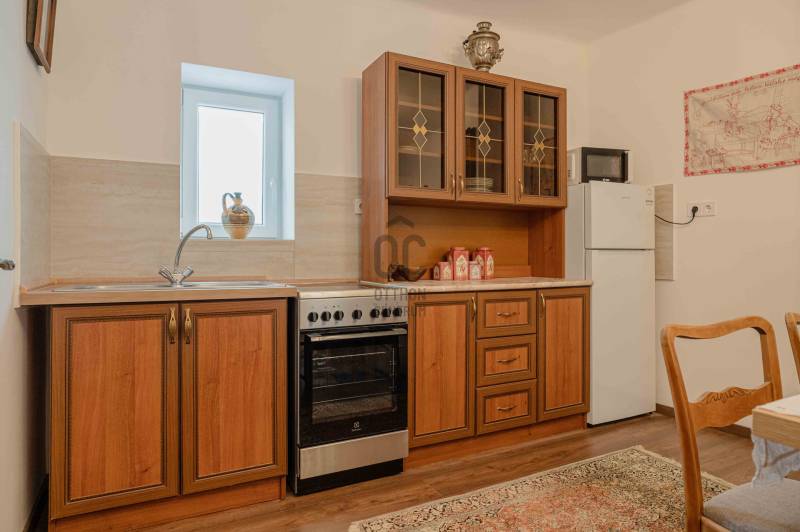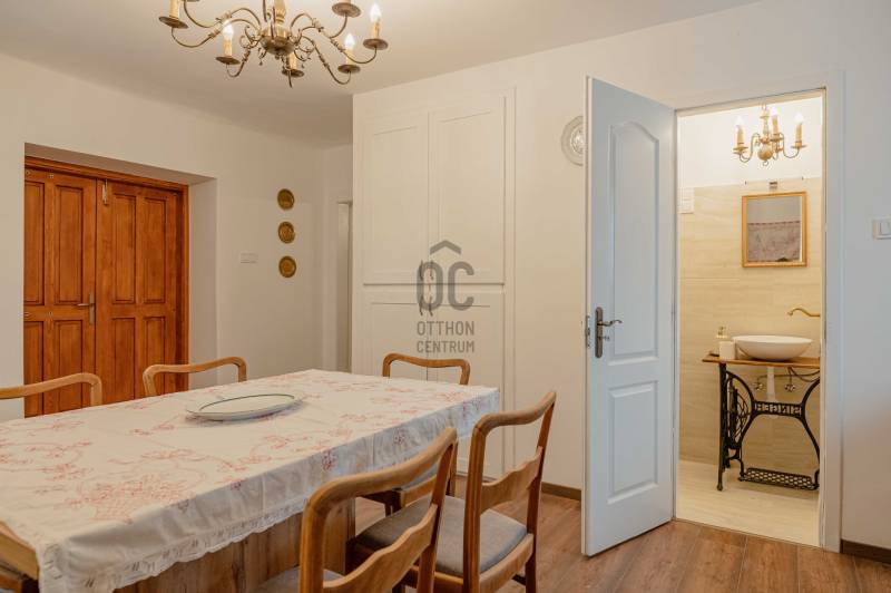 Van egy ház Monostorapátiban, amelynek falai már az 1920-as évek óta őrzik a vidéki élet nyugalmát. Vastag kőfalai, terméskő alapja és a parasztgerendás, stukatúros mennyezet alatt generációk történetei suttognak – ma pedig egy igényesen, teljes körűen felújított, modern komfortot nyújtó otthonként, illetve kiváló befektetési lehetőségként született újjá.Két önálló lakóegység – rugalmas hasznosítás!Az összesen 144 m² hasznos alapterületű ingatlan két, külön bejáratú és külön is hasznosítható lakórészt kínál:Lakóház (73,4 m², egy szinten): - 2 tágas szoba, konyha-étkező, fürdőszoba, külön WC és háztartási helyiségMelléképületből kialakított lakóegység (70,7 m², két szinten): - Alsó szinten konyha-étkező és fürdő-WC, a tetőtérben pedig egy panorámás, világos nappali, amely tökéletes élettér vagy vendégtérTelek mérete: 1125m2Ez az elrendezés ideálissá teszi állandó lakhatásra, nyaralónak, többgenerációs otthonnak vagy apartmanos hasznosításra is.2025-ös teljes körű felújítás – kompromisszumok nélkülA felújítás során nemcsak a látható, hanem a műszaki tartalom is megújult:- Teljes víz-, csatorna- és villanyhálózat csere (3×16A)- Új nyílászárók (ablakok és ajtók)- Betonig visszabontott aljzat, padlopon, minden helyiség egy szintben- Minőségi, magas kopásállóságú padlóburkolatok- Új fürdőszobák, épített zuhanyzók, új szaniterek- A lakóházban 2 db mobil cserépkályha és 1db vaskályha, a melléképület tetőterében klíma előkészítés- Épületenként új villanybojler a meleg vízhez- Külső vízszigetelés dörken lemezzel, friss nemesvakolat- Hőszigetelt, cserépfedéses tetőszerkezet a melléképület felettA végeredmény: hagyományos megjelenés, modern műszaki színvonal, hosszú távra tervezve.Udvar, kert, élhető terekAz egykori pajta udvar felé nyitott része ma hangulatos, fedett térként szolgálhat – ideális kerti grillezésekhez, Jacuzzinak, szaunának, baráti estékhez vagy vendégfogadáshoz.Az ingatlan mellett 2 autó számára térkövezett, zárható parkoló került kialakításra.A széles, enyhén lejtős kertben egy impozáns körtefa áll, az utca felőli részt pedig több mint 30 m³ földdel töltötték fel, így egy gondozott, élhető kert könnyedén kialakítható.Monostorapáti – befektetési aranybánya a Művészetek VölgyébenMonostorapáti a Művészetek Völgye egyik meghatározó települése, ahol minden nyáron több ezer látogató fordul meg. A kulturális rendezvénysorozat évről évre növeli a rövid távú szálláshelyek iránti keresletet, miközben a falu megőrzi nyugalmát és autentikus hangulatát.Ez az ingatlan azonnal hasznosítható vendégházként vagy apartmanként, kiváló hozampotenciállal – mindezt kiemelkedően jó ár-érték arány mellett.ÖsszegzésEz nem csupán egy felújított parasztház, hanem egy történettel bíró, jövő biztos befektetés a Balaton-felvidék egyik legkeresettebb kulturális térségében.Ha olyan ingatlant keres, ahol a múlt értékei és a jelen igényei harmonikusan találkoznak, Monostorapátiban megtalálta.Az energetikai tanúsítvány készítése folyamatban van, amint rendelkezésre áll, úgy azzal a hirdetés frissítésre kerül!Az alaprajz tájékoztató jellegű.