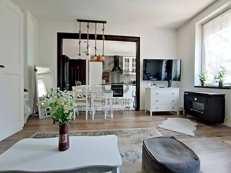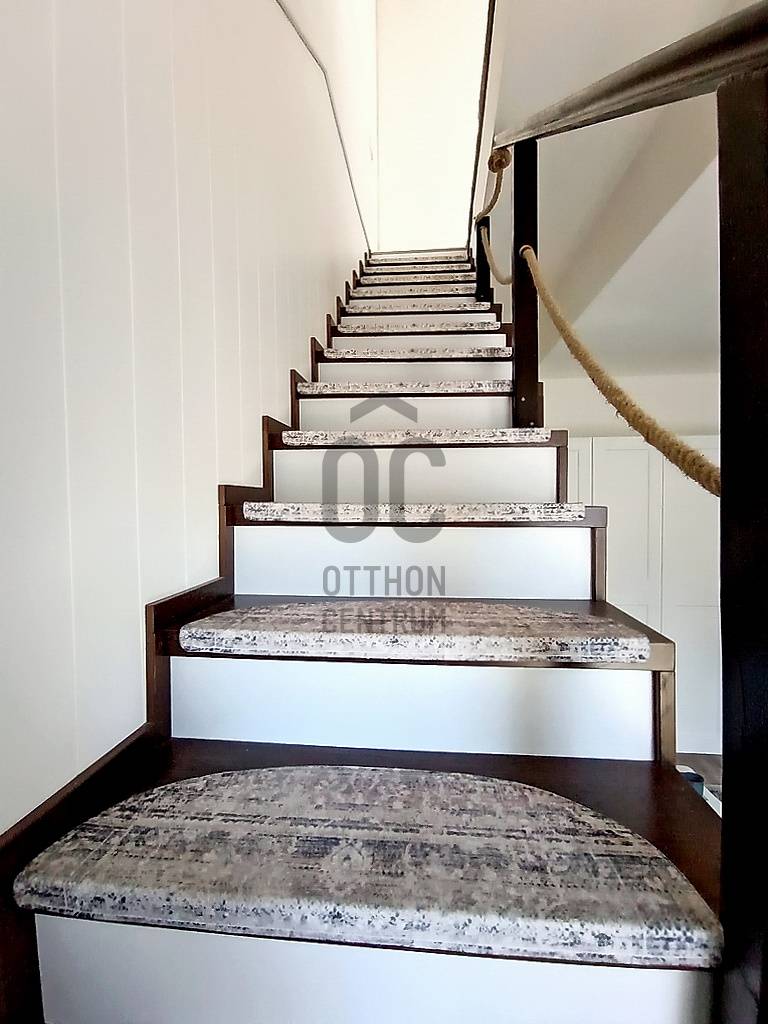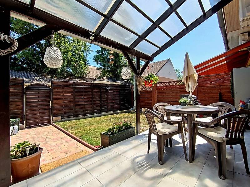 EGY REGGELI KÁVÉZÁS / EGY KELLEMES EBÉD / EGY KIS DÉLUTÁNI SZIESZTA / EGY MEGHITT, GYERTYAFÉNYES VACSORA / EGY SÜTÖGETŐS GRILL PARTY A CSALÁDDAL, BARÁTOKKAL A TERASZON…??? VAGY ESETLEG EGY KIS PIHENÉS / NAPOZÁS / MEDENCÉZÉS / KERTÉSZKEDÉS A TELJESEN LEVÁLASZTOTT, KIZÁRÓLAGOS HASZNÁLATÚ SAJÁT UDVARON ??? ÉS MIND EZ EGY CSENDES, NYUGODT KERTVÁROSI KÖRNYEZETBEN LÉVŐ, KÍVÜL-BELÜL ESZTÉTIKAILAG ÉS MŰSZAKILAG IS TELJES KÖRŰEN FELÚJÍTOTT / ÚJJÁVARÁZSOLT - A VÉTELÁRBAN BENNE LÉVŐ (!!!) VINTAGE STÍLUSBAN GYÖNYÖRŰEN ÉS LUXUS SZÍNVONALON TELJES KÖRŰEN LAKBERENDEZETT ÉS BEGÉPESÍTETT - BELSŐ KÉTSZINTES (DUPLEX) TÁRSASHÁZI LAKÁSSAL A HÁTTÉRBEN... HIGGYE EL, HOGY EZ EGYÁLTALÁN NEM LEHETETLEN !!! :) HA MINDIG IS ERRE AZ ÉLETÉRZÉSRE VÁGYOTT, AKKOR NE IS KERESGÉLJEN / NÉZELŐDJÖN TOVÁBB, MERT SZERINTEM BIZTOS, HOGY MEGTALÁLTA !!! :) IV., Újpest kertvárosi részén - a városközponttól is mindösszesen csak 2-3 perc sétatávolságra - a Lőrinc utcában kínálok eladásra egy kis létszámú, kulturált (csendes, barátságos, segítőkész) lakóközösséggel büszkélkedő, tégla építésű társasházban lévő, a mai kor minden igényét és kényelmét maximálisan szem előtt tartva kialakított, luxus színvonalon lakberendezett (bútorozott és gépesített), 10 cm vastagságú külső (dryvit) hőszigeteléssel és egy nagyon energiatakarékos hűtő-fűtő klímaberendezéssel is tovább komfortosított / rezsicsökkentett, nagyon minőségi anyagokkal és nagyon extra kivitelezéssel, esztétikailag és műszakilag is teljes körűen, 2021-ben felújított és azóta is újszerű / kifogástalan állapotban lévő, keleti tájolású, közvetlen napsütötte (rendkívül világos), az előtte lévő 14 m2 nagyságú, részben - fényáteresztő, UV szűrős polikarbonát tetővel – fedett, fagyálló járólappal burkolt teraszára és a további kb. 40-45 m2 nagyságú, saját, kizárólagos használatú, teljes mértékben elszeparált zöld kertjére / térkövezett járdás udvarára panorámás - a földhivatali bejegyzés / tulajdoni lap szerint 34 m2 alapterülettel - de az ingatlan belső kétszintessé történő átépítésének / átalakításának, a tetőtér teljes körű beépítéséből kifolyólag kapott plusz 26 m2-nyi lakóterületnek köszönhetően, a valóságban és használhatóságában is már 60 m2-es (!!!) alapterülettel büszkélkedő, kiváló helyiség elosztással rendelkező, az alsó (34 m2-es) lakószinten, a lakás központi szerepét betöltő - teljesen bútorozott és begépesített (munkalapba épített 4 zónás gázfőzőlap + külön beépített elektromos sütő, mikrohullámú sütő, kürtős pára-, és szagelszívó berendezés, beépített mosogatógép és automata mosógép, fagyasztós hűtőszekrény) amerikai konyhás - 4-6 személy számára egy kényelmes étkezőt és a felső lakószintre felvezető lépcsőházat is magába foglaló - nappalinak, a bejáratnál praktikusan kialakított előszobának és nem utolsósorban egy nagyon esztétikus / megfelelő méretű - a WC-t is magában foglaló - épített zuhanyzós fürdőszobának, valamint a felső (26 m2-es) „tetőtéri” lakószinten pedig egy légtérben kialakított, hihetetlenül tágas / kényelmes és hatalmas hálószobának / dolgozószobának / olvasósaroknak / pihenőrésznek is otthont adó öröklakást, amelyhez még egy önálló, zárható, porszáraz, kb. 5-6 m2 alapterületű, téglaépítésű udvari tároló is hozzá tartozik !!! :)Az ingatlant mind műszaki, mind esztétikai, valamint belső építészeti szempontból is a lehető legmodernebb és legmagasabb minőségű anyagokat és megoldásokat tartalmazza (csak a teljesség igénye nélkül...)- a bukó-nyíló, hőszigeteléssel és több légkamrás üvegezéssel ellátott, nagy méretű ablakai műanyag redőnnyel felszereltek,- a biztonsági zárral és üvegbetétekkel gazdagon ellátott (nagyon fényáteresztő), esztétikus és modern, időjárás álló, műanyag külső burkolattal védett, de belül acélbetétes megoldással bíró bejárati ajtót építettek be,- az egész ingatlanban lévő fűtést 1 darab - a nappali egyik ablaka alá szerelt - parapet kivezetéses, FÉG Zeusz típusú “látványkandallós kivitelezésű\" modern, nagy hatásfokú gázkonvektor biztosítja - amely maximális hatékonysággal, minimális fogyasztás mellett biztosítja a kellemes hőérzetet, így téve szinte láthatatlanná a téli napok fűtésköltségét :)- a forró nyári napok ellensúlyozására, a tetőtéri lakószint plusz hűtésére és egyben fűtésére is szolgáló, valamint a lakás komfortfokozatának a tovább növelésének érdekében is, a tetőtéri lakószintre felvezető „lépcsőházi részen” egy nagyon energiatakarékos klímaberendezés került felszerelésre,- a lakás különleges és egyedi melegségét / otthonosságát meghatározó belső-, és a hangulatvilágításokat is a legmodernebb, főleg meleg színhőmérsékletű (sárga fényű) LED izzószálas (energiatakarékos), dízájn lámpatestekkel oldották meg,- a szoba és a tetőtéri lakószint padlóját magas minőségű és kopásállóságú laminált parkettával, a lakás többi helyiségének padlóját pedig, szintén nagy kopás állóságú és magas minőségű járólappal burkolták,- a gondosan kiválasztott fali burkolatoknak sikerült otthonossá tennie / tovább emelnie a lakás hangulatát,- a minőségi konyhabútort egy munkalapba épített 4 zónás gázfőzőlappal, egy külön beépített elektromos sütővel, egy kürtős (külső kivezetésű) pára-, és szagelszívó berendezéssel és egy a konyhai vízrendszerbe bekötött mosogatógéppel, valamint (a fürdőszobai helymegtakarítás érdekében pedig…) egy automata mosógéppel varázsoltak teljes értékűvé,- a kellemesen haszná