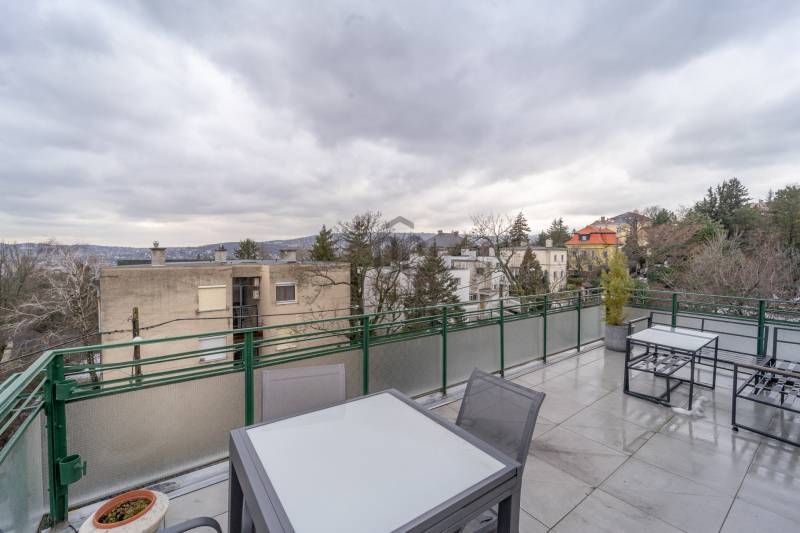 Rózsadombon kínálunk eladásra egy különleges adottságú lakást, amelyhez egy valóban privát tetőterasz és ikonikus budapesti panoráma tartozik. A tér és a kilátás együttese nyugalmat, szabadságot és azt a magától értetődő exkluzív budai életérzést adja, amely egyszerre van a város felett, mégis szervesen benne.A lakás a társasház csendes felső szintjén helyezkedik el, ahonnan páratlan kilátás nyílik a Gellért-hegyre, a Budai Várra, a Parlamentre, a Halászbástyára és Budapest ikonikus városképére. A 48 m²-es tetőterasz ritka panorámás adottság: tökéletes helyszín pihenéshez, barátok fogadásához, esti beszélgetésekhez, naplementékhez – igazi városi menedék a város felett.Az ingatlan prémium kivitelben, tudatos tervezéssel került felújításra, megőrizve a patinás, Bauhaus jellegű épület karakterét, miközben minden részletében a mai kor igényeire reflektáló modern műszaki tartalommal rendelkezik. Magas minőségű Internorm nyílászárók kerültek beépítésre alumínium külső borítással és háromrétegű üvegezéssel, alumínium rolóval és szúnyoghálóval. A teljes terasz üvegfelülete megújult, napellenző került felszerelésre, valamint háromfázisú áram áll rendelkezésre, kültéri szauna előkészítéssel.A lakás fűtése korszerű elektromos padlófűtéssel megoldott, amely tovább erősíti a letisztult, komfortos életteret. A konyha magasfényű, osztrák gyártású bútorzattal készült, beépített AEG és Bosch gépekkel; a konyhasziget a mindennapok természetes középpontja, ahol a design és a funkcionalitás magától értetődően találkozik.A kis lakásszámú társasház, a presztízs környezet és a gyors belvárosi elérés együttese olyan városi életteret hoz létre, amely egyszerre reprezentatív és élhető, nyugodt és inspiráló. Ez a lakás nem alkalmazkodni akar, hanem hangulatot és életstílust kínál.Ez az ingatlan nem versenyez másokkal – elhelyezkedése és panorámája nem reprodukálható.Itt a minőség alapérzés. A tér, a panoráma és a környezet együtt hozzák létre azt az exkluzív budai életérzést, amely nem hasonlítható, nem ismételhető – egyszerűen csak jelen van.