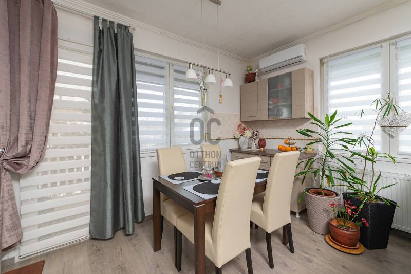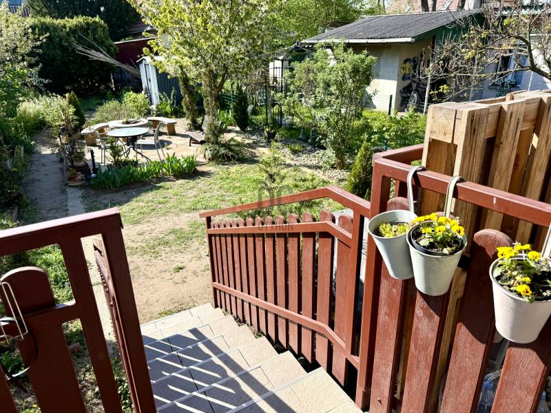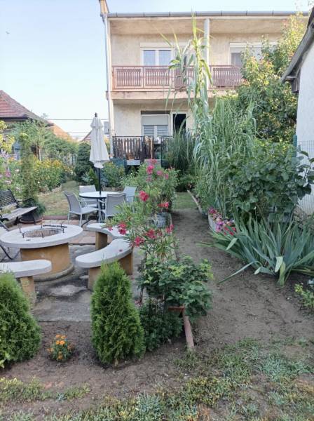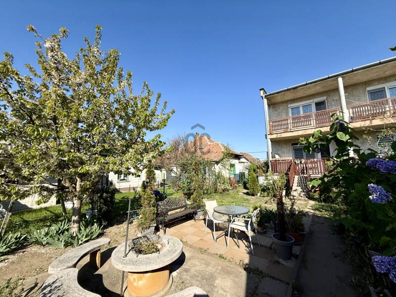 XVII. kerületben Rákoscsaba kertvárosi, családi házas részén (Szent László telep), csendes mellékutcában kínáljuk megvásárlásra egy kétlakásos társasház FELÚJÍTOTT földszinti, 83 nm-es, nappali-konyha-étkező + 3 egész szobás, kertkapcsolatos, napfényes lakását. Az ingatlanhoz 260 nm-es kizárólagos használatú, leválasztott kert, valamint a pinceszinten 1 kisebb személyautó parkolására alkalmas garázs és tároló tartozik (21nm), itt van víz és lefolyó, így mosókonyhaként is használható.Jellemzők: -déli tájolás, világos lakás-műanyag nyílászárók redőnnyel, szúnyoghálóval-kondenzációs kazán fűtésre és melegvízre-hűtő-fűtő klíma-felújított fürdőszoba, konyha, szobákban új laminált padló-bejárati ajtó, belső ajtók cserélve lettek-elektromos hálózat, vízcsövek szintén cserélve-falakon egyedi, kézzel készült gyönyörű festés található, mely igazi éke a lakásnak-16 nm-es terasz a nappaliból, közvetlen kertkapcsolat-telken belül felszíni autóbeálló 1-2 autónak-csendes, családi házas környék-buszmegálló, bevásárlási lehetőség rövid sétára#csendes #eladólakás #kert #pince #terasz #felújított #amerikaikonyha #klíma#sajátkert #alacsonyrezsi #széplakás #eladóingatlan