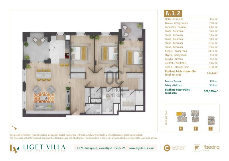 Projekt bemutatásaAki többre vágyik, mint egy átlagos lakópark, most hazaérkezett! Itt élni, itt lakástulajdonosnak lenni, egyet jelent a minőséggel.Az épületrőlA pesti diplomatanegyed legszebb utcájában épül, a megjelenésében, műszaki tartalmában és a lakáskínálata tekintetében egyaránt unikális, Liget Villa Lakópark. Az épületbe érve, egy elegáns lobby és recepcióra érkezünk majd. Innen a három épületet egy kerti úton, passzázs köti majd össze. A tervezés során nagy hangsúlyt kapott a családi igényekre tervezett lakás minőségi használhatósága. Ablakos konyhák, master bedroom-ok, dupla fürdőszobák, gardrób és háztartási helyiségek is helyet kapnak a lakásban. Kiemelten jól bútorzható, két irányba tájolt lakások kerülnek kialakításra. A földszinti lakásokhoz 50-100 m2-es privát kertek, míg a közös területeken tájépítész által tervezett reprezentatív kertet alakítunk ki. A lakásokban mennyezeti hűtés-fűtés biztosítja a téli-nyári kellemes komfortérzetet. A nyílászárók 3 rétegű üveggel, alu-fa kivitelben kerülnek beépítésre. A lakások ára tartalmazza alapárban az alu elektromos redőnyöket és okosotthon kiépítést is. Magas minőségű olasz és spanyol hidegburkolatválasztékban akár 60x60 cm-es lapok is válaszhatóak majd. A fa parketta és az átlag feletti minőség szaniterek, szintén alapárban válaszhatóak a lakásokba. Az épületek alatti mélygarázsban gépkocsibeállók és tárolók kerülnek kialakításra. A környékről:A környék közlekedése kiváló. 5 perc sétával elérhető a Andrássy úton a kisföldalatti. A szomszédos Balzac utcában és Dózsa György úton is számos buszjárat és troli is közlekedik. A város számos pontjára, akár átszállás nélkül is eljuthatunk. Ha pedig autóval közlekedünk, az M3 autópálya pár perc alatt elérhető. A Városligeti fasor két oldalán található szervízúton, parkolnia is lehet a Liget Villa Lakóparkba érkezőknek.Előnyök:A Liget Villa Lakpark lakásai, tökéletes választás azoknak, akik szeretnék élvezni a városi kényelmet anélkül, hogy lemondanának a természet közelségéről és a csendes életformáról. A belváros és a zöld liget is sétatávolságban elérhető. A gyerekek számára paradicsom a Városliget. Játszóterek, tó, sportpályák, állatkert, minden, amit egy gyerek csak kívánhat egy parkban. A közelben pedig a kultúrát és a sportos életformát kedvelők, egyaránt megtalálják a számukra fontos helyszíneket. Néprajzi, Szépművészeti, Mezőgazdasági múzeumok, a Magyar Zene Háza, a Műcsarnok mind-mind gazdag élményt nyújtanak az oda látogatóknak. A Városliget fasor pedig már önmagában egy oázis a városi környezetben. Hatalmas gesztenyefák, gyönyörű villaépületek, követségek, gimnázium, templom mellett sétálhatunk el nap mint nap. Ide nagyon jó lesz minden nap hazajönni.