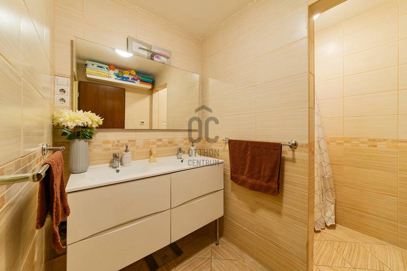 Kispest kertvárosi részén kínálok egy nagy alapterületű, újszerű lakást egy mediterrán stílusú lakópark első emeletén.A 64 nm-es lakás nagy méretű amerikai konyhás nappalival rendelkezik, kényelmes hálószobával, gardróbbal és szintén nagy méretű fürdőszobával. Nagy alapterületének köszönhetően egy plusz hálószoba leválasztására is lehetőség van, így könnyen nappali plusz 2 hálószobássá alakítható. A műanyag hő és hangszigetelt ablakok redőnnyel és szúnyoghálóval felszereltekA 34 lakásos, 2 szintes társasház számos extrával rendelkezik: a belső udvaron lévő közösségi területen medence és kerti grillezési lehetőség van. Ezen kívül a biliárd szoba és a kondi terem használata is a tulajdonosok részére lett kialakítva.A lakáshoz tartozik egy 4 nm-es saját tároló is.Kiváló közlekedés: Határ úti metró állomás 10 perc, M5 autópálya 5 perc.