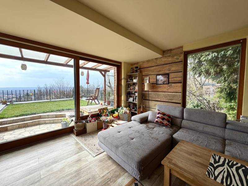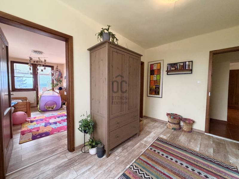Ritka lehetőség a piacon: állandó panoráma, teljes nyugalom, mégis mindössze 15 percre Budapesttől!Ez a 150nm-es világos, tágas otthon Budakeszi legszebb részén helyezkedik el, ahol sem autóforgalom, sem szomszédzaj nem zavarja a mindennapokat.Otthon, ahol egész nap süt a nap.A nappali, a terasz és a hálószobák egész nap természetes fényben fürdenek.A 60 nm-es terasz egy része füvesített, automata öntözőrendszerrel felszerelt, igény esetén jakuzzi is telepíthető, így saját privát wellness-szigeted lehet.Ősztől tavaszig a teraszról és a nappaliból páratlan naplementékben gyönyörködhetsz.Környezet és közlekedés:A környék csendes, zöldövezeti, igazi kis sziget a város mellett.A buszmegálló 5 perc sétára található, a Budapest-bérlettel használható járatok 5 percenként közlekednek, így a főváros gyorsan és kényelmesen elérhető, dugóállás nélkül, mindkét irányban.Műszaki állapot:•A ház 2007-ben társasházzá nyilvánított, 2019-ben teljes felújításon és 12 cm-es szigetelésen esett át•Szintek teljesen elszeparáltak, saját bejárattal és külön helyrajzi számmal•A telek adottsága miatt a szomszédokkal gyakorlatilag nem lehet találkozni•Fa, dupla üvegű nyílászárók•Viessmann kondenzációs kazán•Alacsony rezsi: fűtés ~15.800 Ft/hó, áram ~5.700 Ft/hóKert és parkolás:•A lakáshoz kb. 200 nm saját kert tartozik•Emellett 702 nm közös, gondozott kert is rendelkezésre áll, gyümölcsfákkal, virágokkal, sütögető hellyel•Ingyenes utcai parkolás, saját beállón•Extra: 1 év ingyenes parkolóhely a pár perc sétára található teremgarázsban (a vételár része!)Infrastruktúra:•DM, Coop, pékség, éttermek, park és játszótér (10 perc séta)•Két irányban 5 perc alatt cukrászdák, kávézók•Kiváló óvodák, iskolák (állami és magán), erdei és parki játszóterek•Közeli védőnői, gyermekorvosi és felnőtt orvosi központ•Kedves, összetartó, segítőkész lakóközösségKinek ajánljuk?Tökéletes választás:✔ családoknak✔ külföldről hazatelepülőknek✔ befektetőknekakik exkluzív, panorámás, nyugodt otthont keresnek közel Budapesthez.Gyors 30 napos birtokbaadás! Rugalmasan megtekinthető, további információért és megtekintési időpontért hívjon!